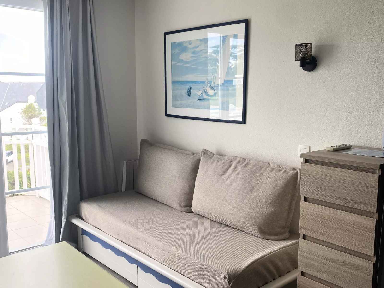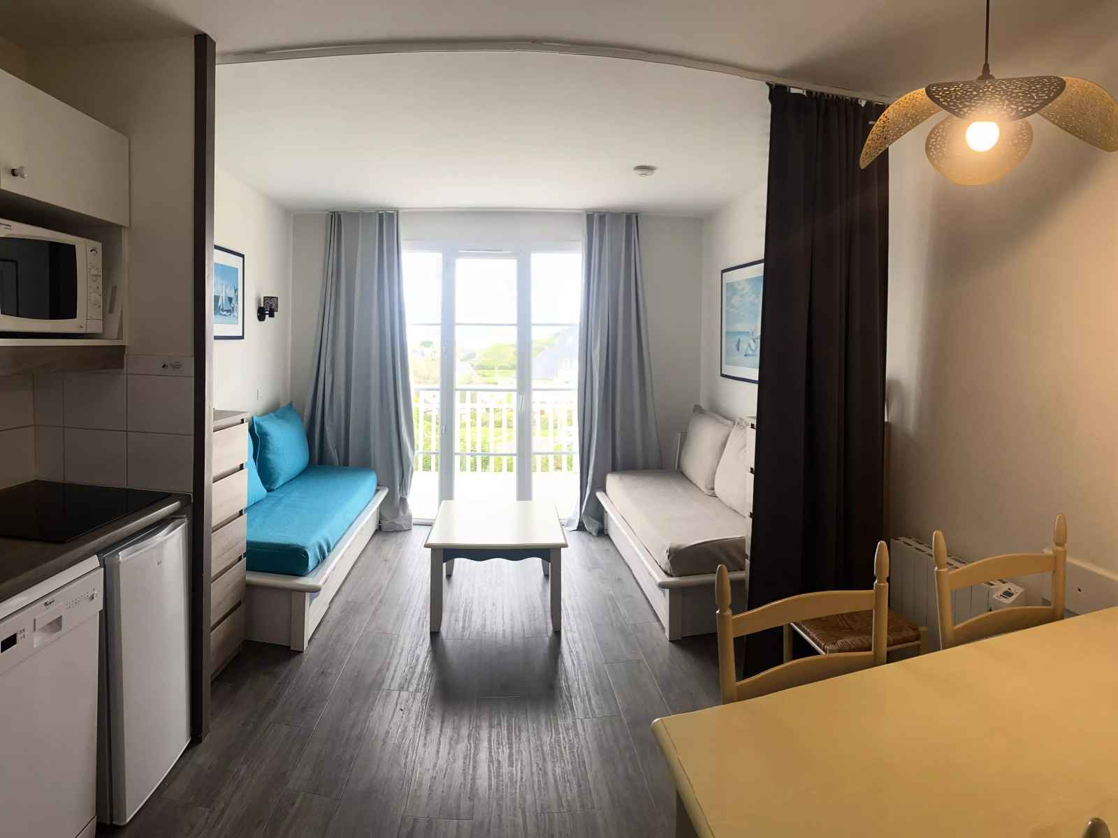 composition du séjour : 2 lit-banquettes simples et 1 lit gigogne (3 couchages).