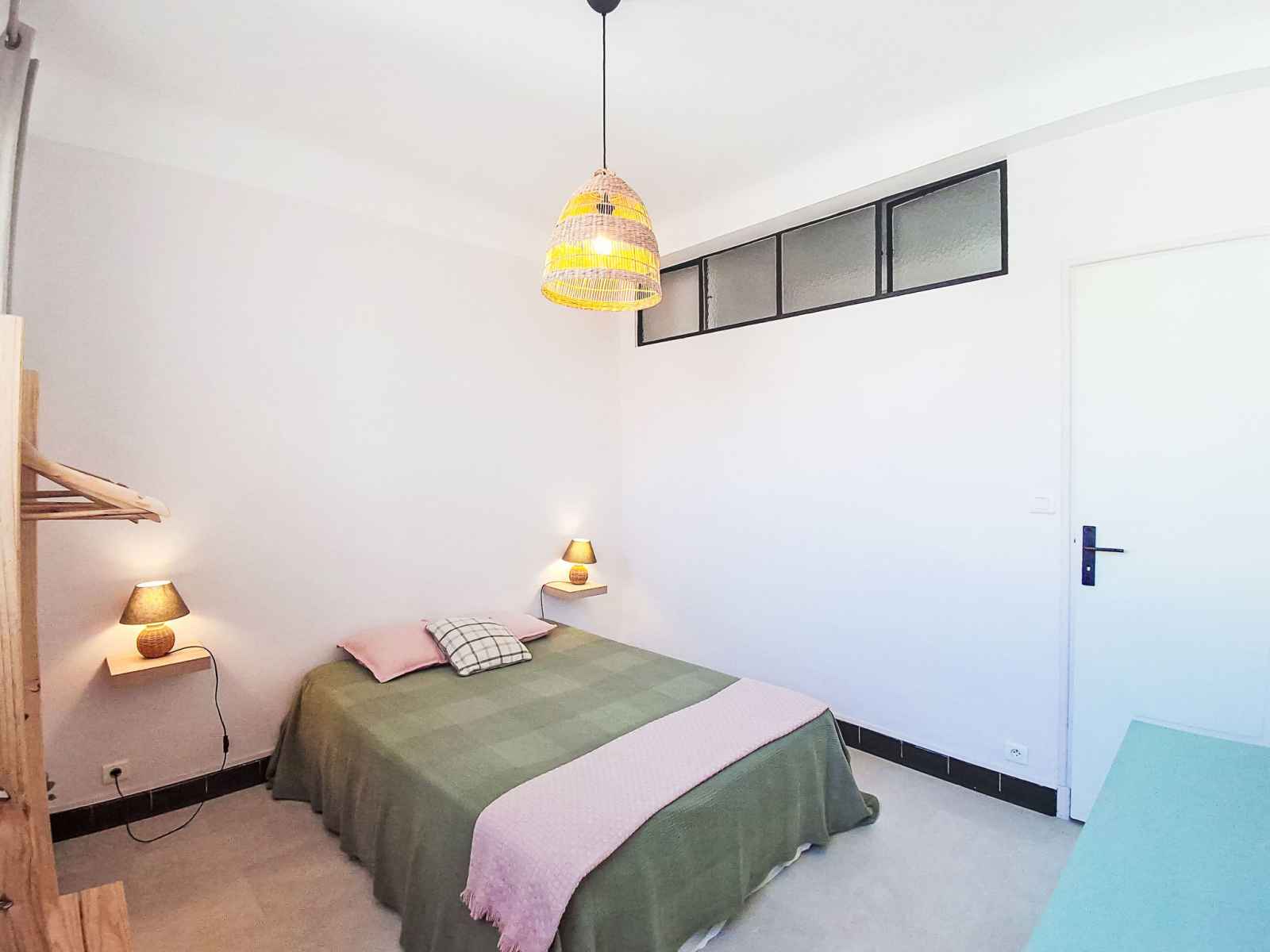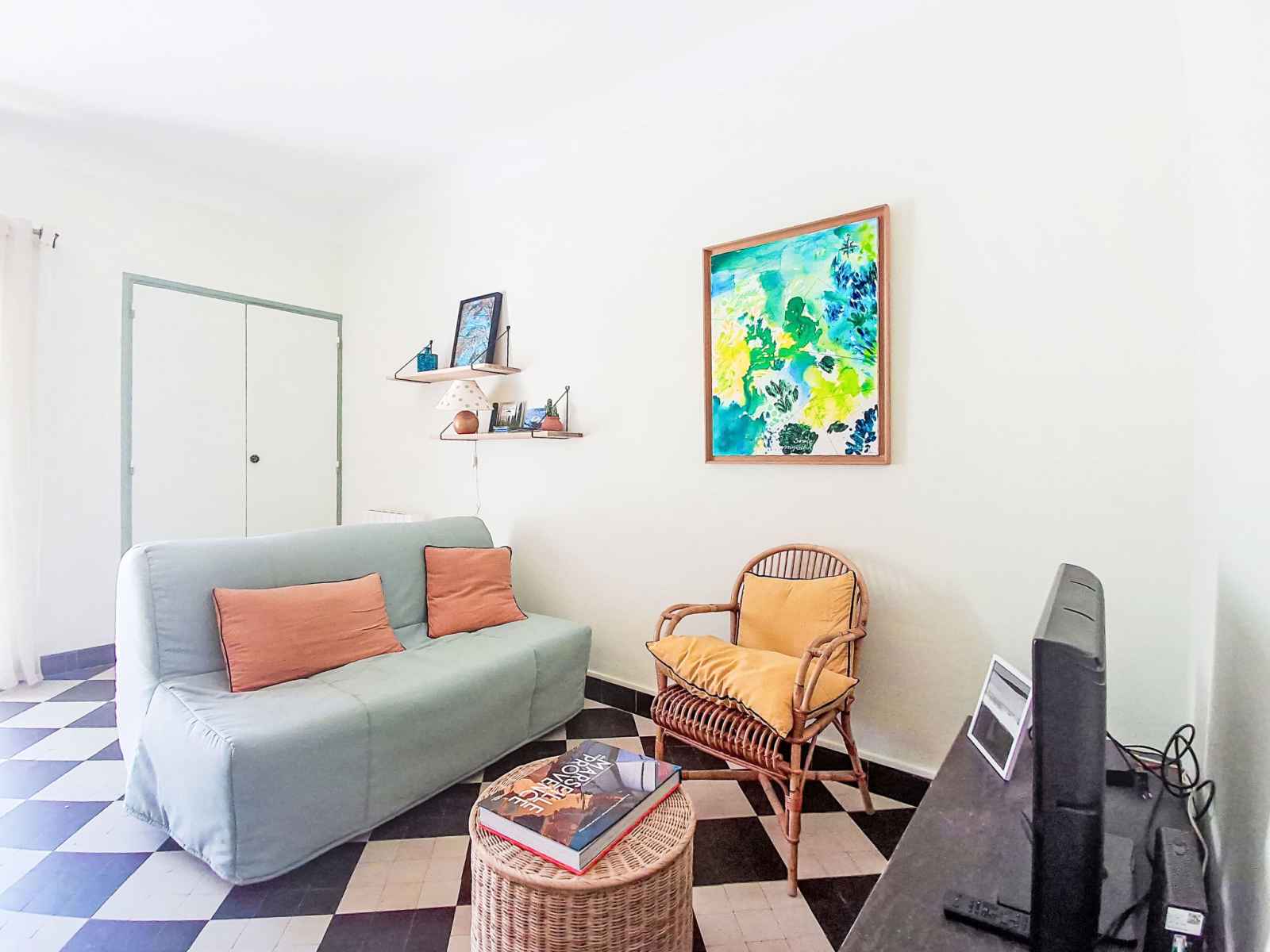 Apt 2 pièces 42 m2 au 1er étage. aménagement agréable: séjour/salle à manger avec 1 divan-lit double (140 cm, longueur 190 cm), tv (écran plat). sortie sur le balcon. 1 chambre avec 1 grand-lit (140 cm, longueur 190 cm). cuisine ouverte (1 plaque de cuisson, four, 2 plaques à induction, grille-pain, bouilloire électrique, micro-ondes,