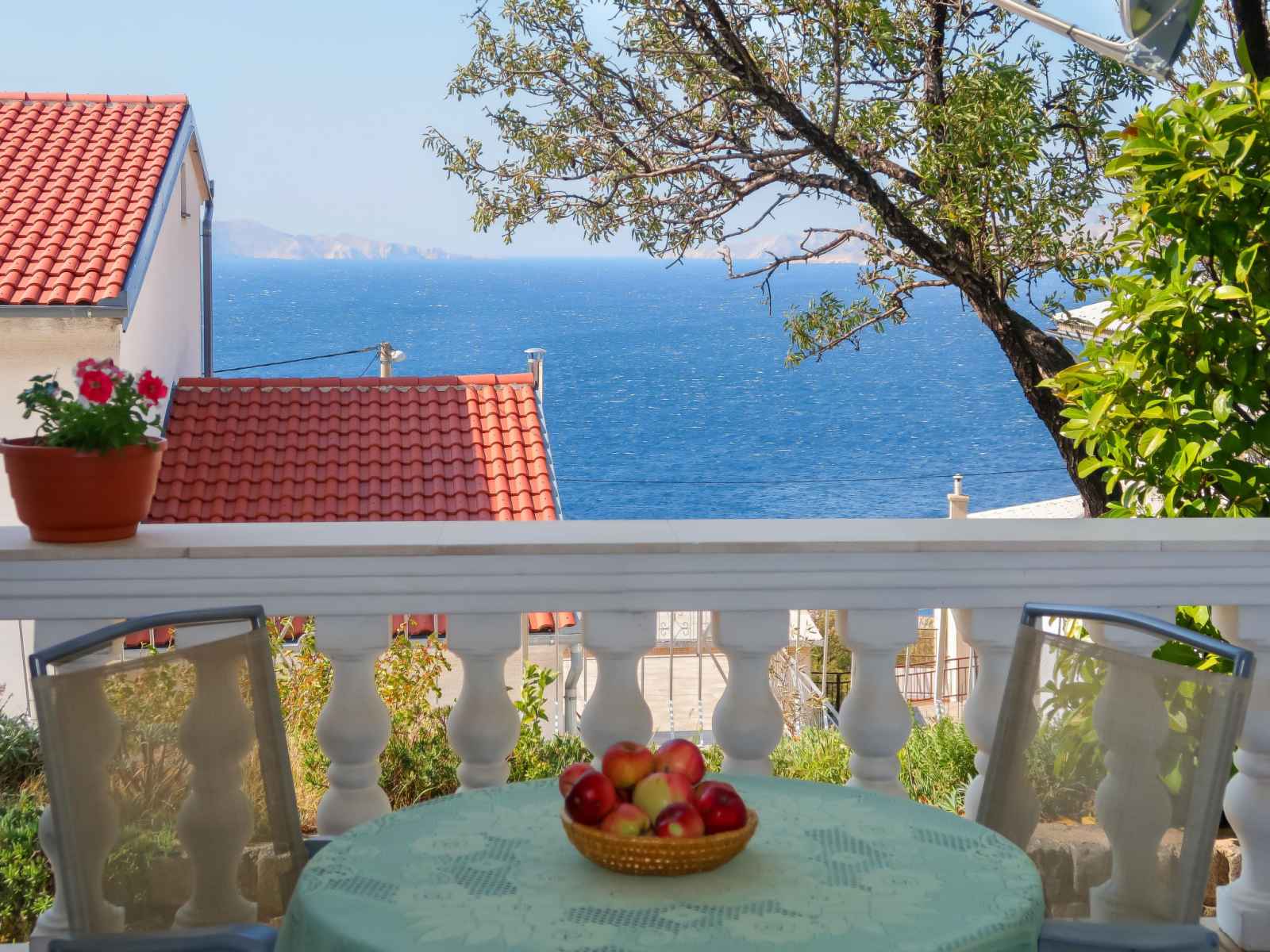 congélateur, cafetière électrique) avec table pour les repas, TV (satellite). Sortie sur la terrasse. Douche/WC. Air-conditionné. Pas de chauffage. 3 terrasses couverte. Meubles de terrasse, chaises longues (2). Vue sur la mer. A disposition: Internet (Connexion WIFI, gratuit). Veuillez noter: maison non-fumeur. Maximum 1 animal/ chien autorisé.