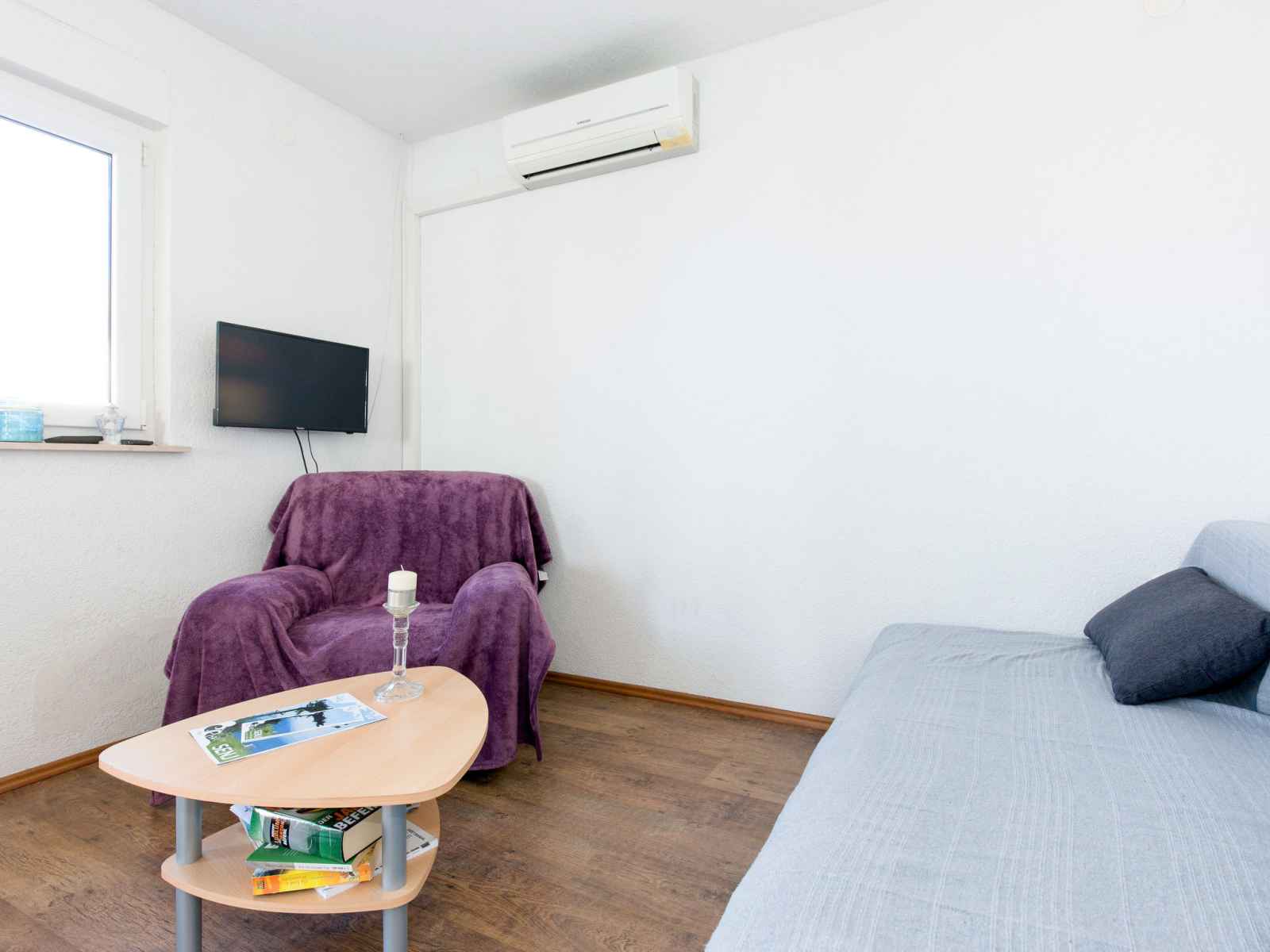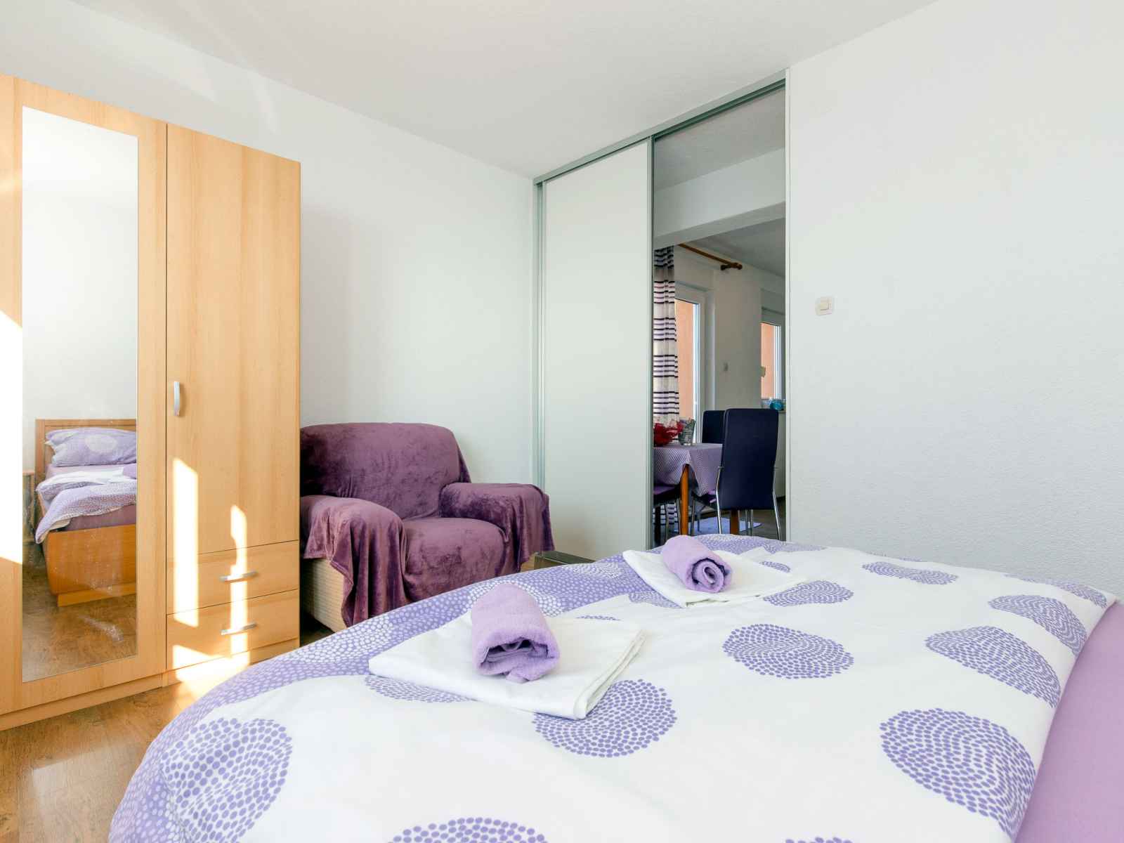 "tajana", apt 2 pièces 37 m2 au 2ème étage. séjour/chambre à coucher avec 1 divan-lit double (160 cm, longueur 200 cm), tv (satellite) et air-conditionné. sortie sur le balcon. 1 chambre avec 1 grand-lit (160 cm, longueur 200 cm). cuisine ouverte (2 plaques de cuisson, micro-ondes, cafetière électrique). douche/wc. air-conditionné (en