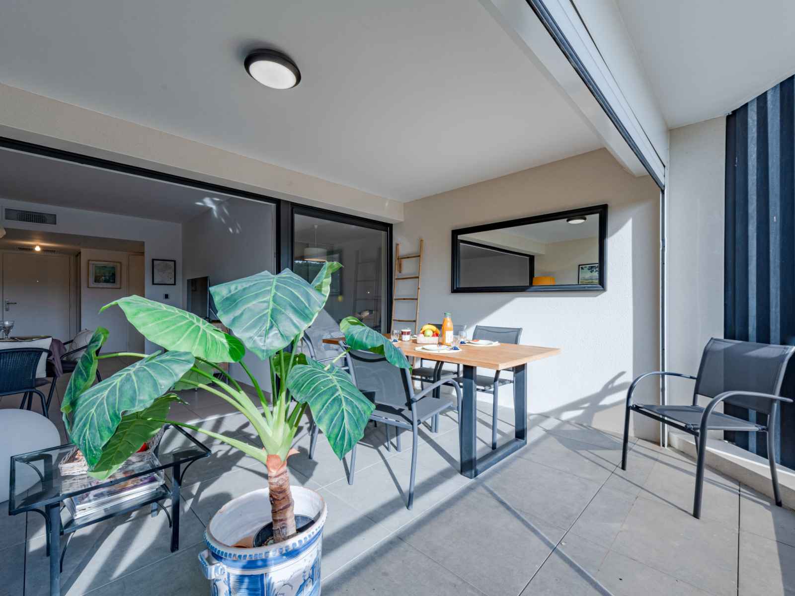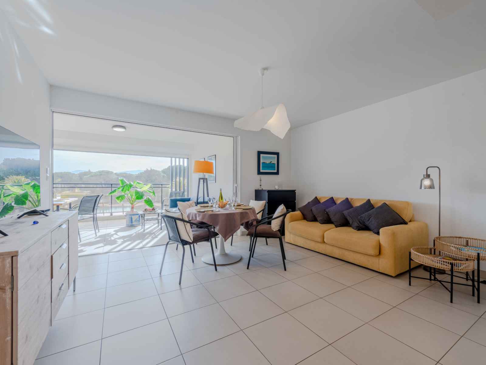 grille-pain, bouilloire électrique, micro-ondes, congélateur, cafetière électrique). Douche, bidet, WC séparé. Air-conditionné. Terrasse 16 m2, couverte, situation sud. Belle vue sur la piscine. A disposition: lave-linge, fer à repasser. Internet (Connexion WIFI, gratuit). Place de parking (1 Voiture). Veuillez noter: détecteur de fumée. Annonce d'un particulier (art 155, IV du CGI).