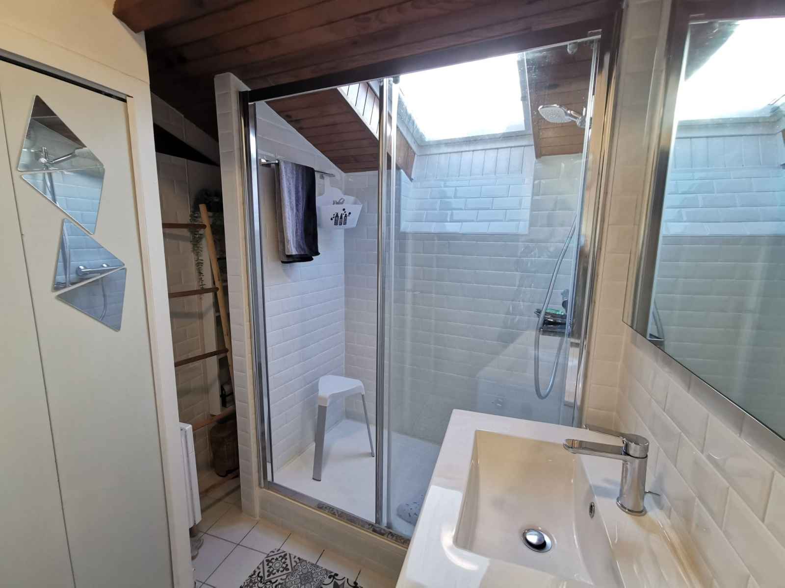 cm). 1 chambre avec 1 grand-lit (1 x 140 cm, longueur 190 cm). Douche/WC. Chauffage électrique. A disposition: lave-linge, sèche-linge. Internet (Connexion WIFI, en sus). Veuillez noter: détecteur de fumée. Au lieu d'une chambre fermée, des espaces de couchage sont situés dans une zone ouverte (galerie, alcôve...). 3528800288919
