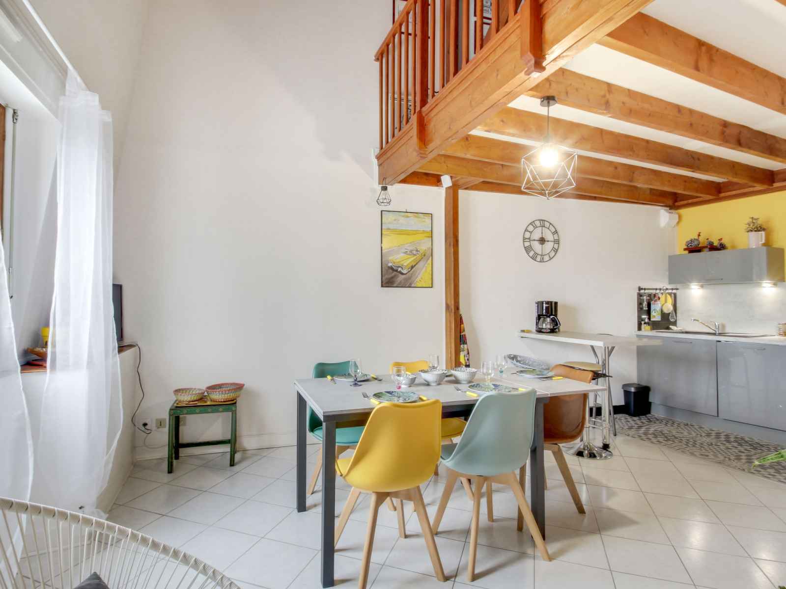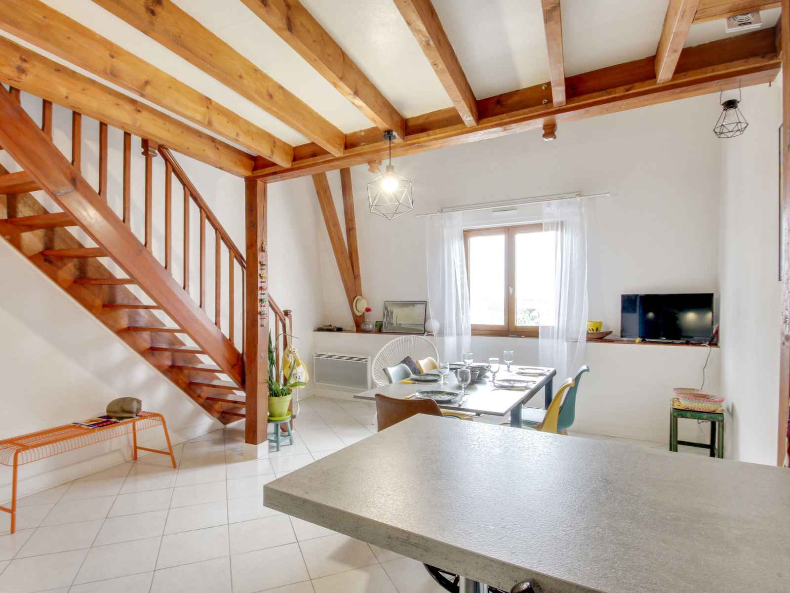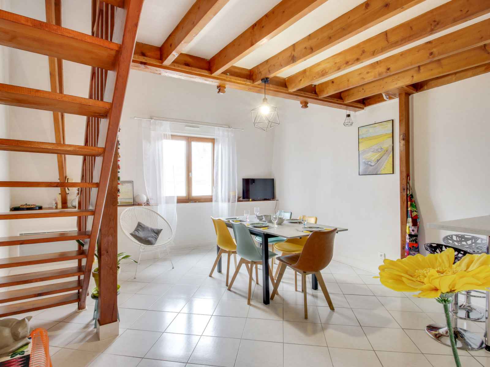 "emeuraude", apt 2 pièces 62 m2 au 3ème étage, situation sud. aménagement agréable et de bon goût: séjour/salle à manger avec tv (écran plat). cuisine ouverte (four, 4 plaques à induction, micro-ondes, congélateur, cafetière électrique). wc séparé. À l'étage supérieur: galerie avec 1 divan-lit double (1 x 140 cm, longueur 190