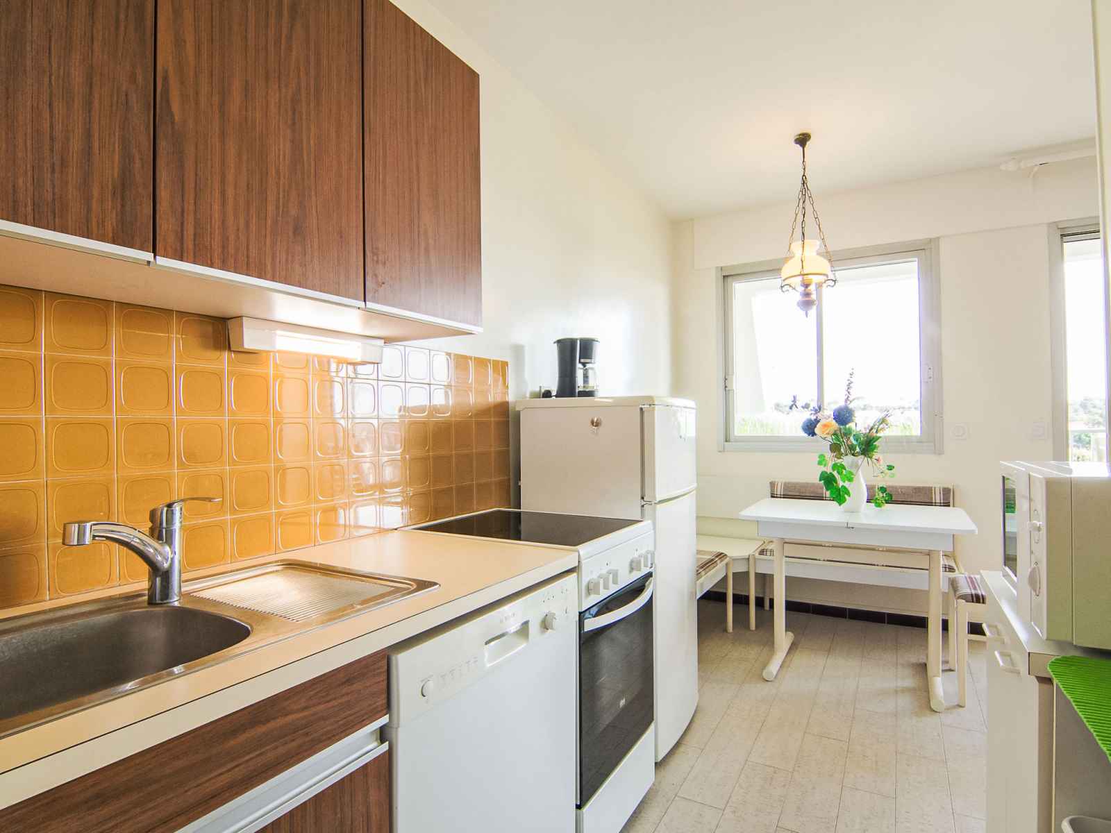Apt 2 pièces 55 m2 au 3ème étage. spacieux, aménagement fonctionnel: grand séjour/salle à manger avec 1 divan-lit double (1 x 140 cm, longueur 190 cm), tv. sortie sur la terrasse. 1 chambre avec 1 grand-lit (1 x 140 cm, longueur 190 cm). cuisine ouverte (4 plaques de cuisson, four, micro-ondes, congélateur, cafetière électrique). douche,