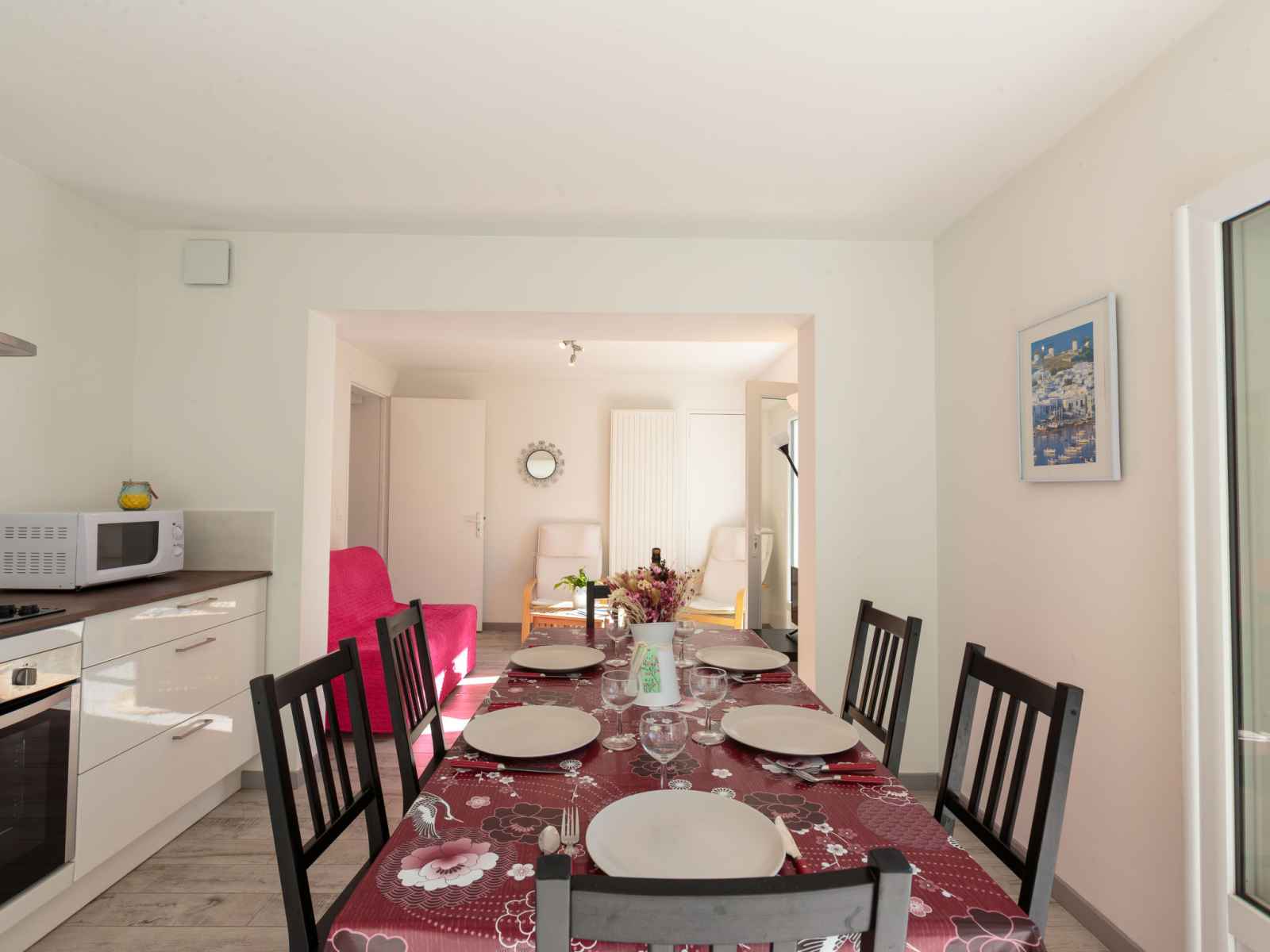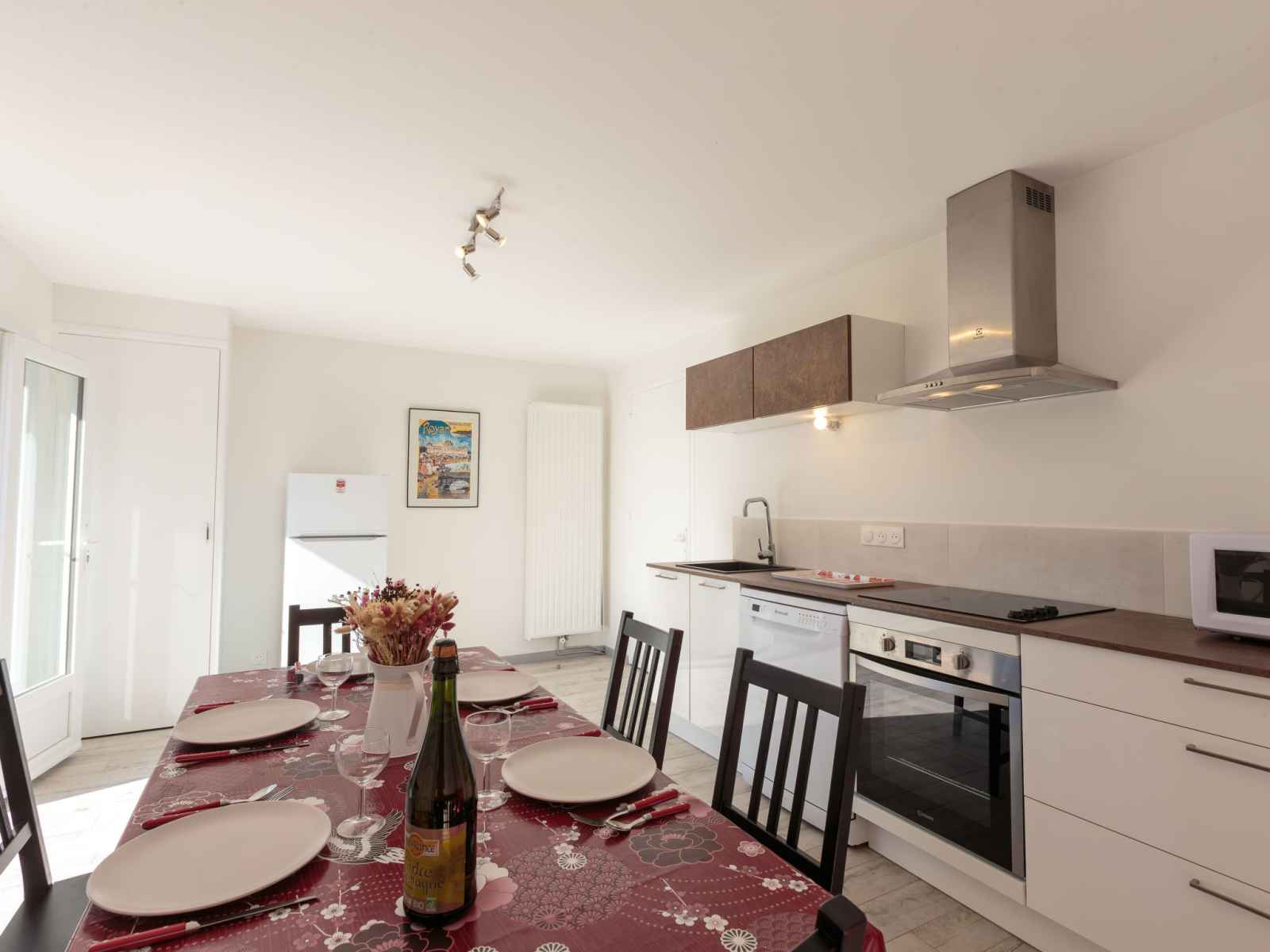 lave-vaisselle, micro-ondes, congélateur, cafetière électrique). Douche, douche/WC, WC séparé. Chauffage électrique. Grande terrasse. Meubles de terrasse, barbecue. A disposition: lave-linge. Internet (Connexion WIFI, gratuit). Veuillez noter: détecteur de fumée.