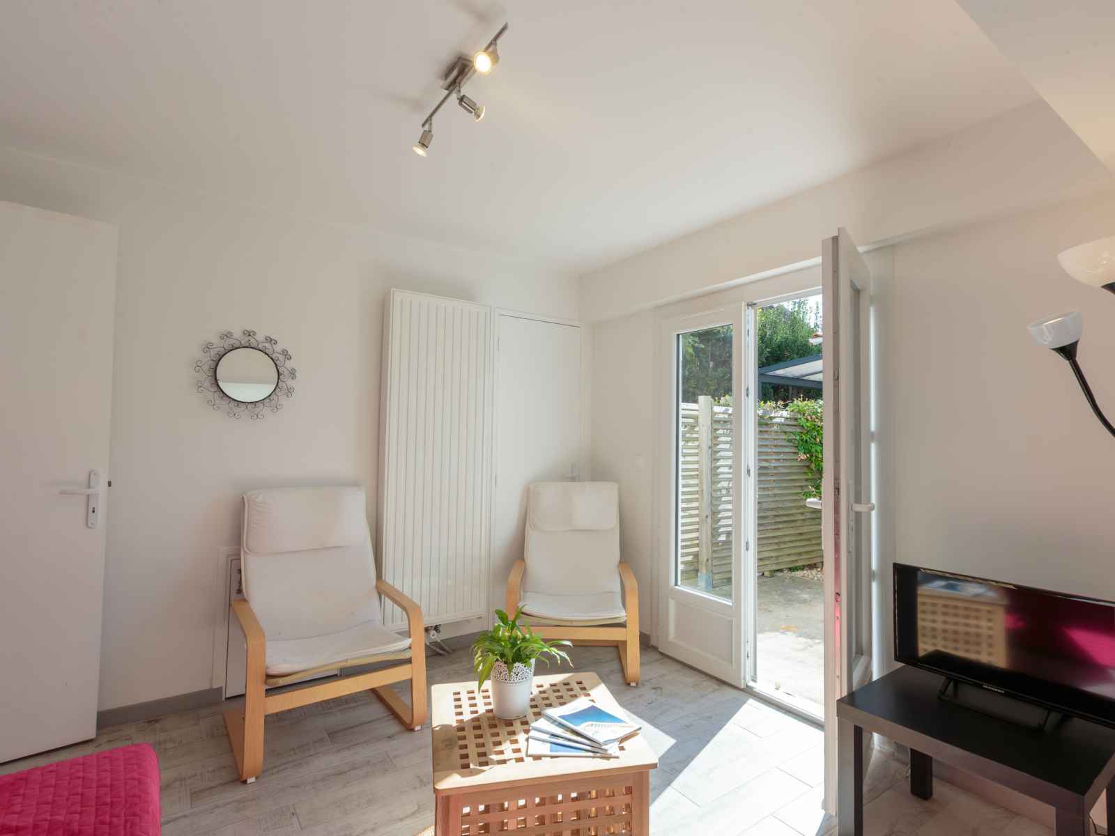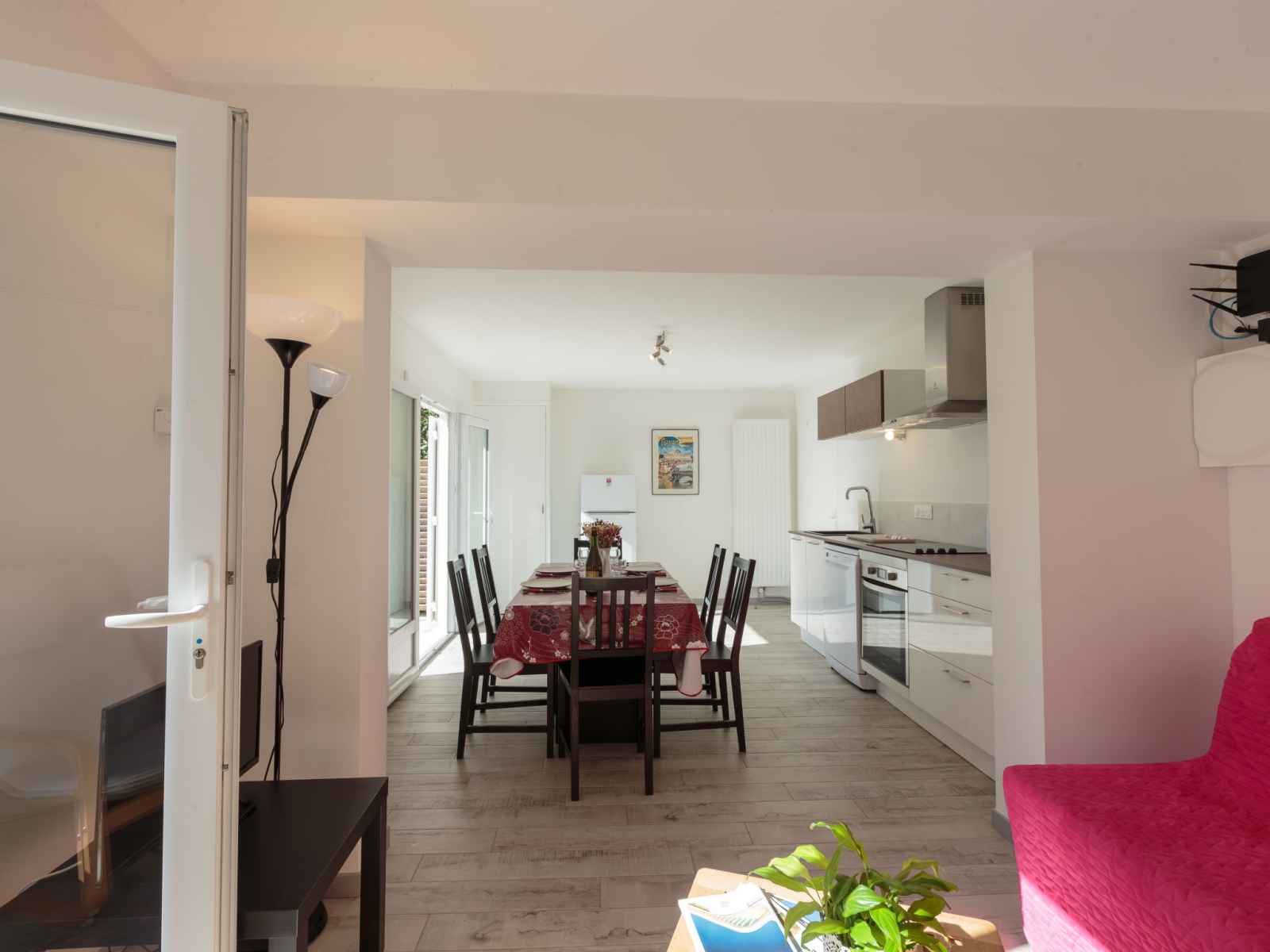 Apt 2 pièces 60 m2, sous-sol de plain-pied. aménagement fonctionnel et confortable: séjour/salle à manger avec 1 divan-lit double (1 x 140 cm, longueur 190 cm), tv (écran plat). sortie sur la terrasse. 1 chambre avec 1 lit (80 cm, longueur 190 cm), 1 grand-lit (1 x 140 cm, longueur 190 cm). coin cuisine (4 plaques de cuisson, four,