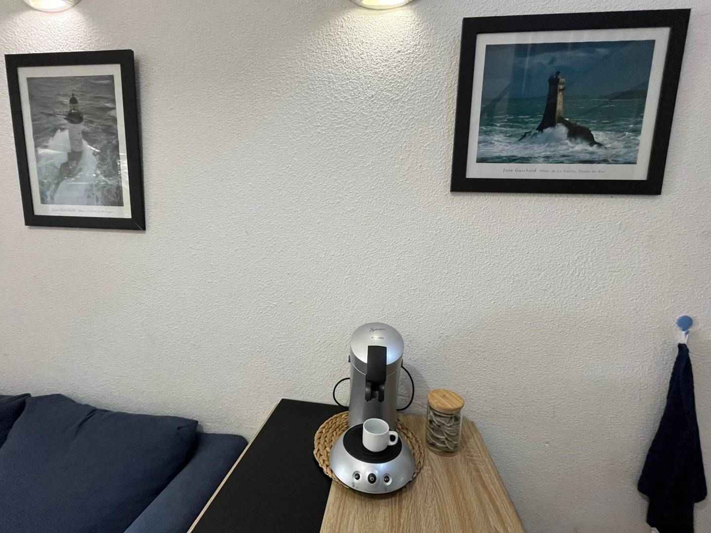 principale avec canapé et TV, ouvrant sur une cuisine parfaitement équipée (plaques, micro-ondes, cafetière, bouilloire) pour préparer vos repas en toute simplicité.