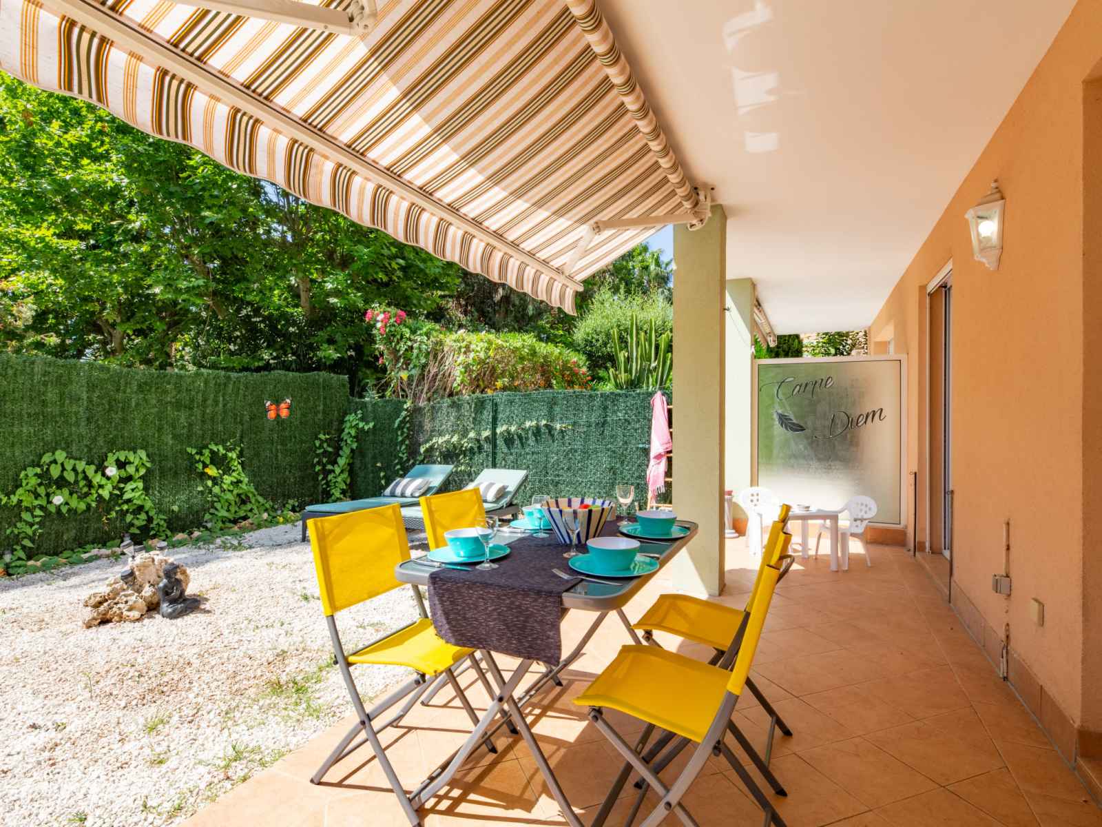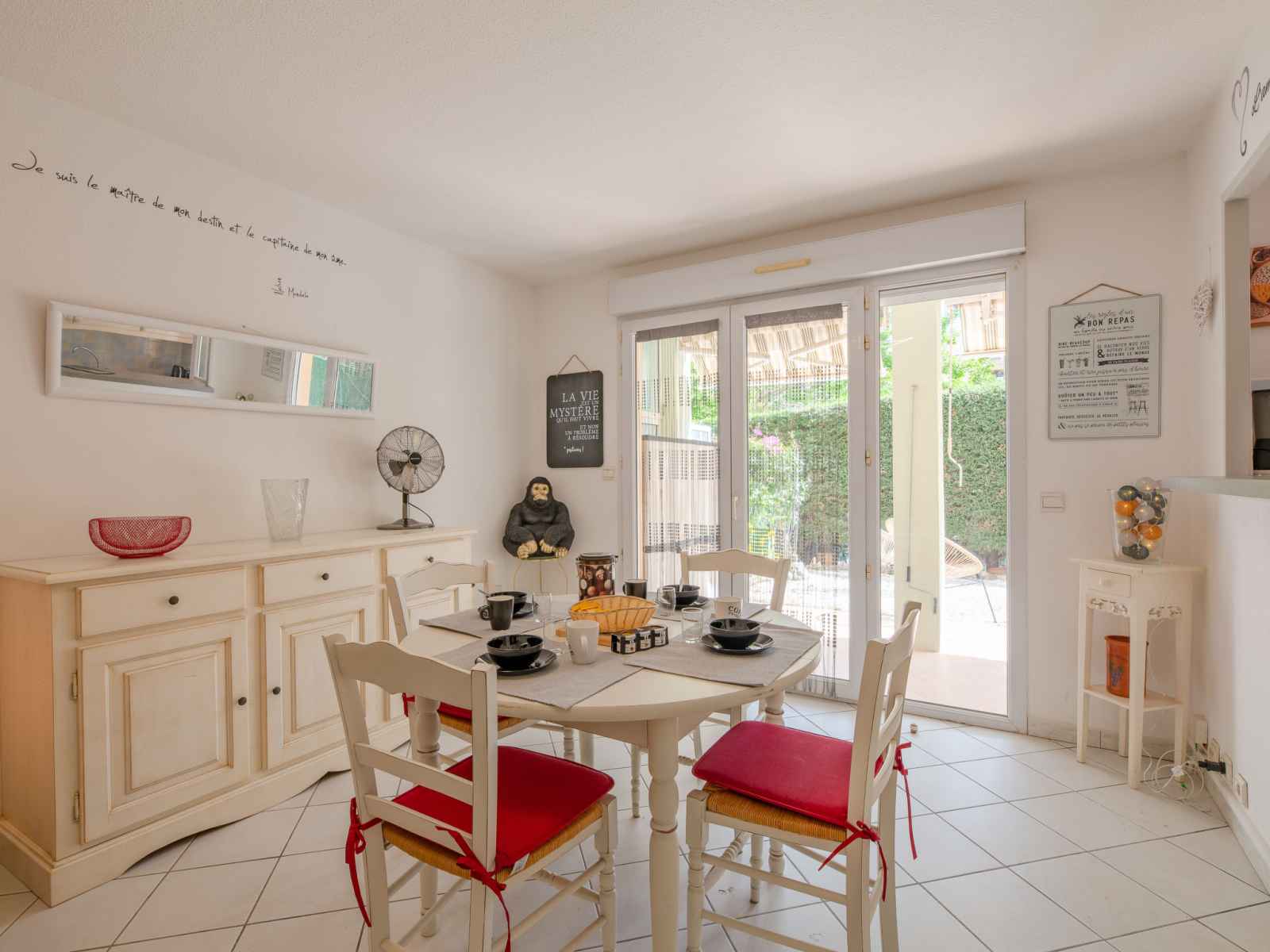 vitrocéramiques, grille-pain, bouilloire électrique, micro-ondes, congélateur, cafetière électrique). Sortie sur la terrasse. Douche, WC séparé. Chauffage électrique. Terrasse 15 m2, couverte, situation ouest, jardinet 15 m2. Meubles de terrasse. A disposition: lave-linge, fer à repasser, sèche-cheveux. Internet (Connexion WIFI, gratuit). Veuillez noter: logement non-fumeur. Maximum 1 animal/ chien autorisé. Détecteur de fumée. Annonce d'un particulier (art 155, IV du CGI). 83115005114HT