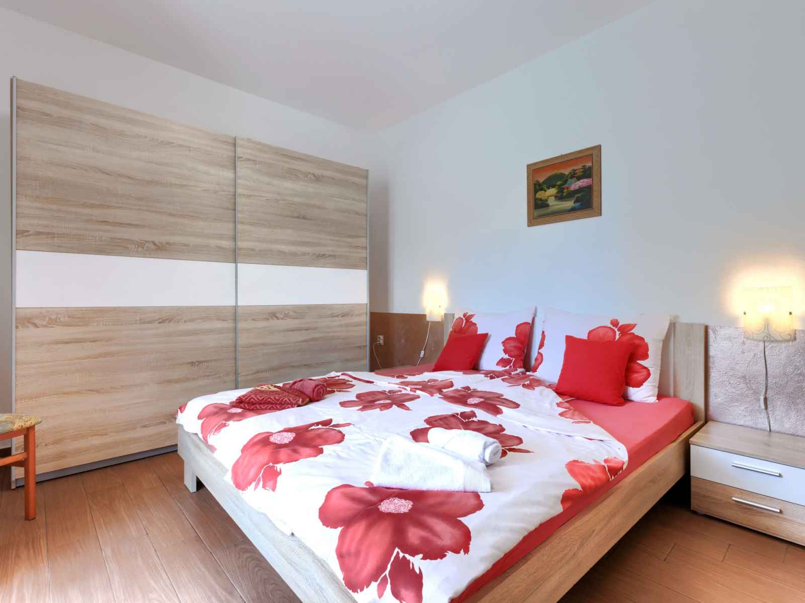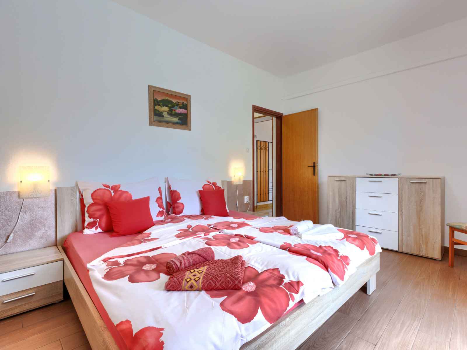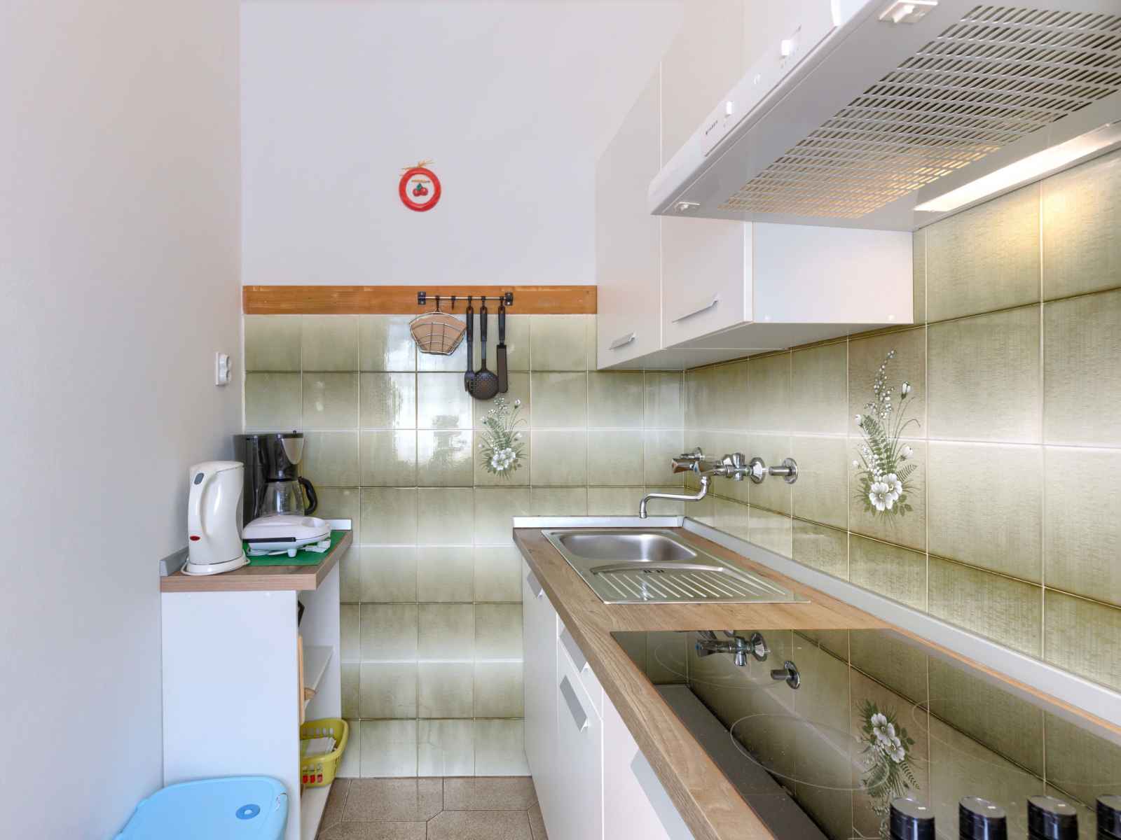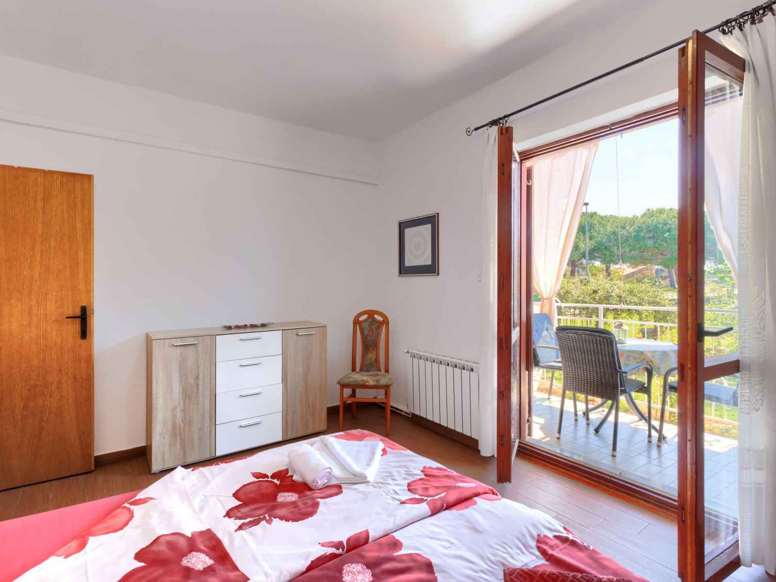 "elvi", apt 2 pièces 45 m2, au rez-de-chaussée. séjour/chambre à coucher avec 1 lit, table pour les repas, tv (satellite) et air-conditionné. sortie sur le balcon. 1 chambre avec 1 lit double (2 x 90 cm, longueur 200 cm). sortie sur le balcon. cuisine ouverte (4 plaques de cuisson, grille-pain, bouilloire électrique, micro-ondes, cafetière