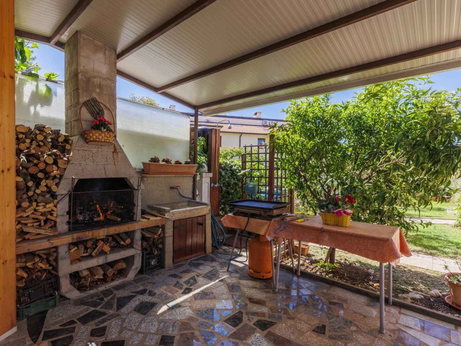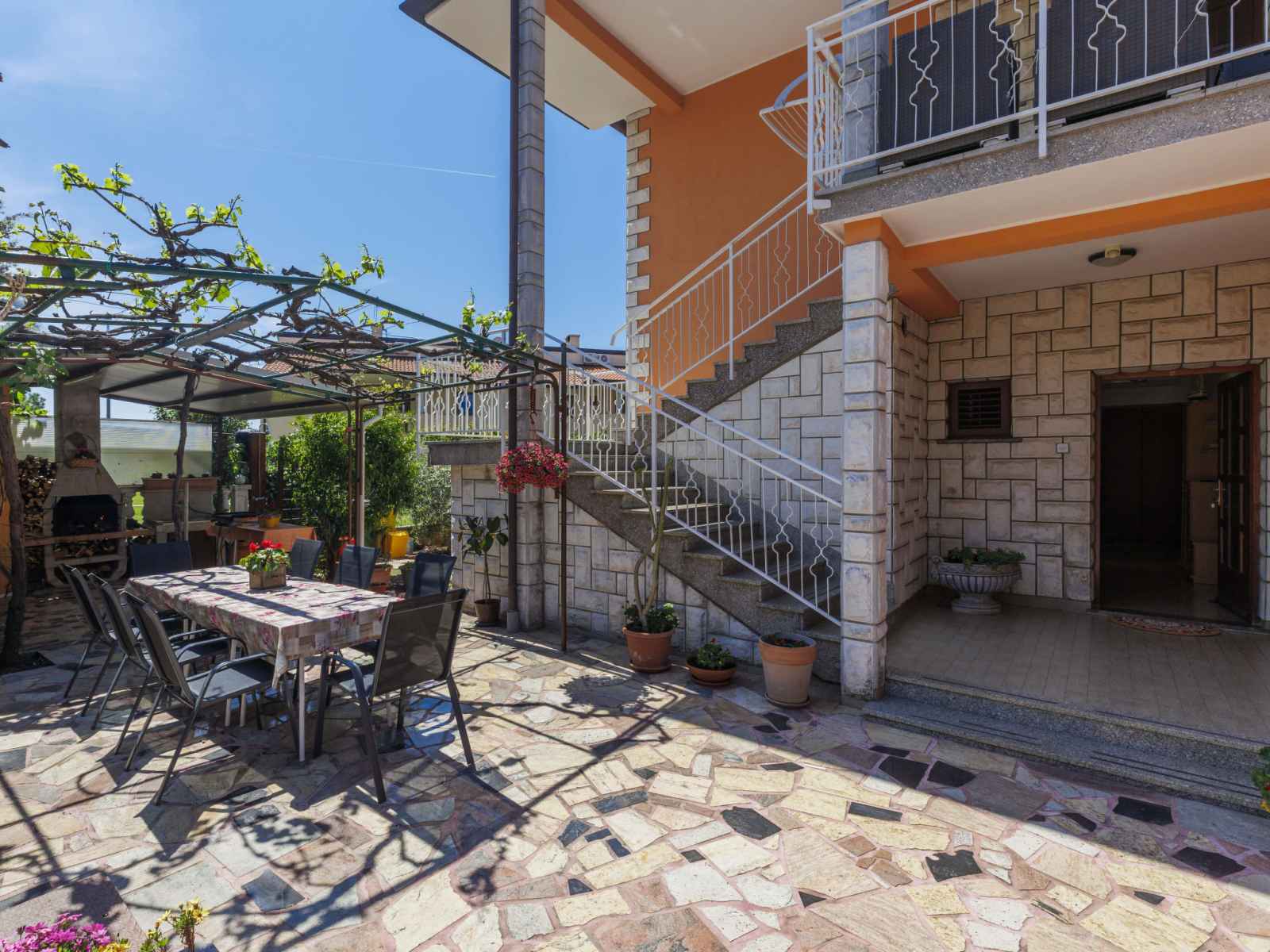 Immeuble. À 500 m du centre d'umag, à 15 km du centre de novigrad, à 35 km du centre de poreč, à 50 m de la mer, à 50 m de la plage. en commun: terrain 300 m2 (clôturé) avec plantes. barbecue. infrastructures de la maison: accès internet. place de parking sur le terrain. magasins, restaurant, café, zone piétonne 500 m, arrêt de bus 2