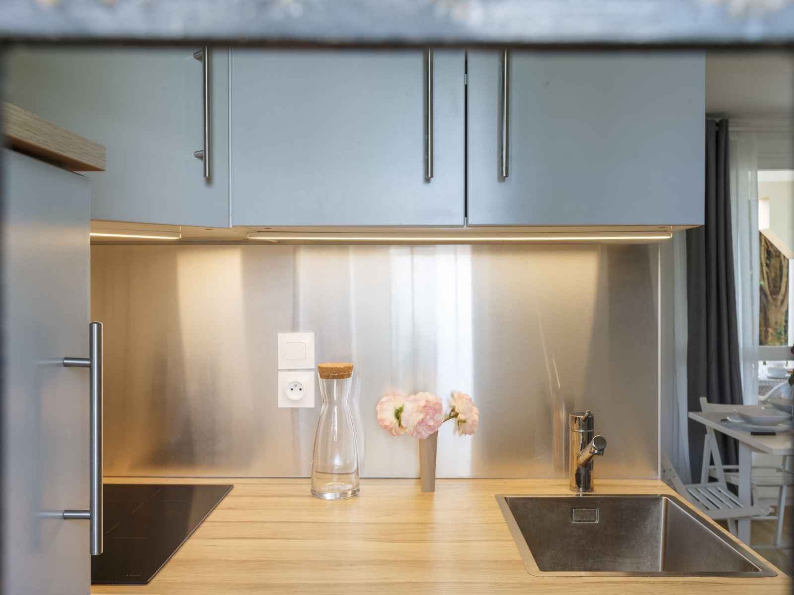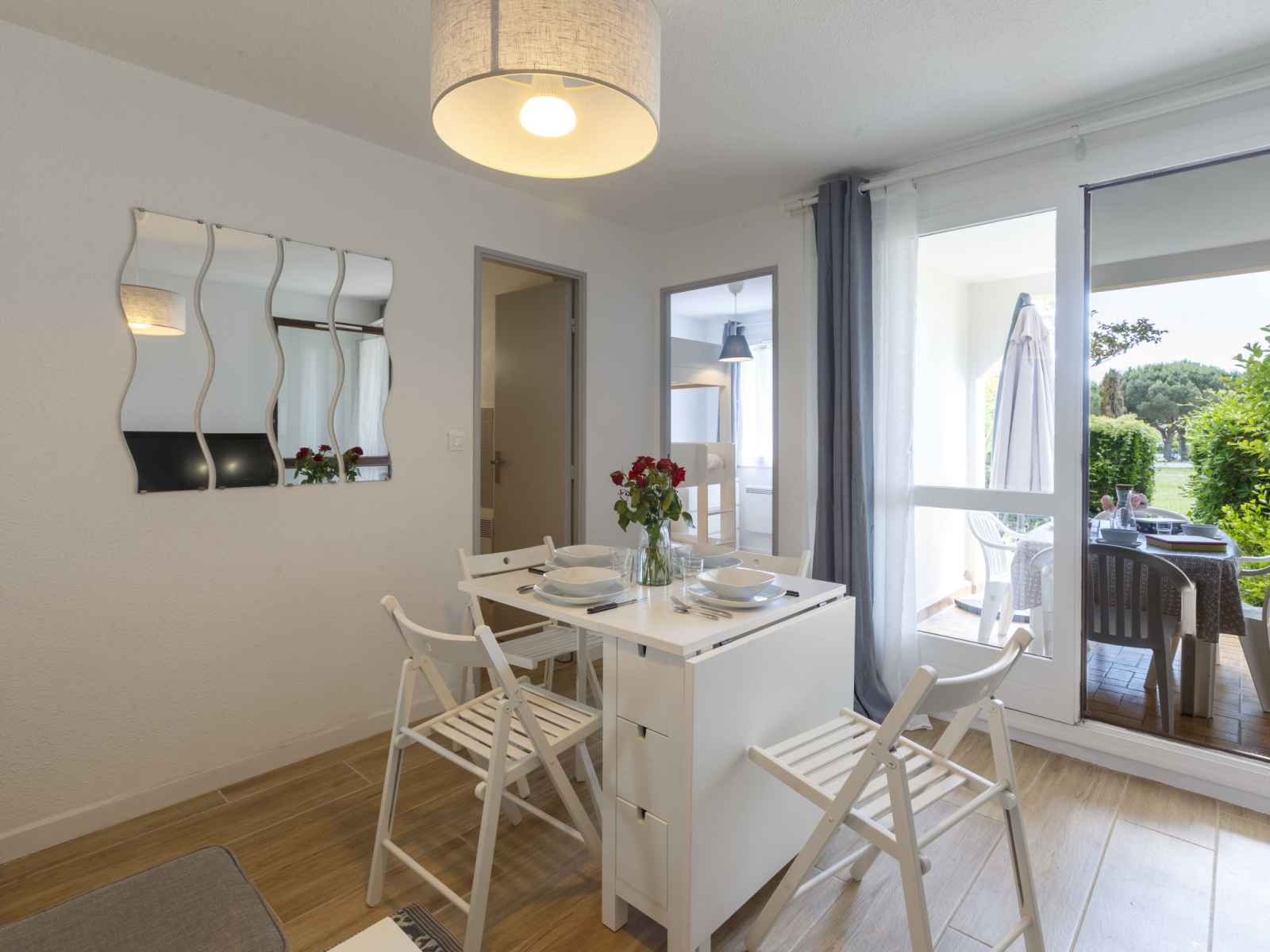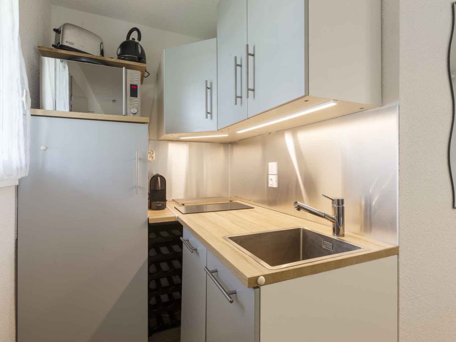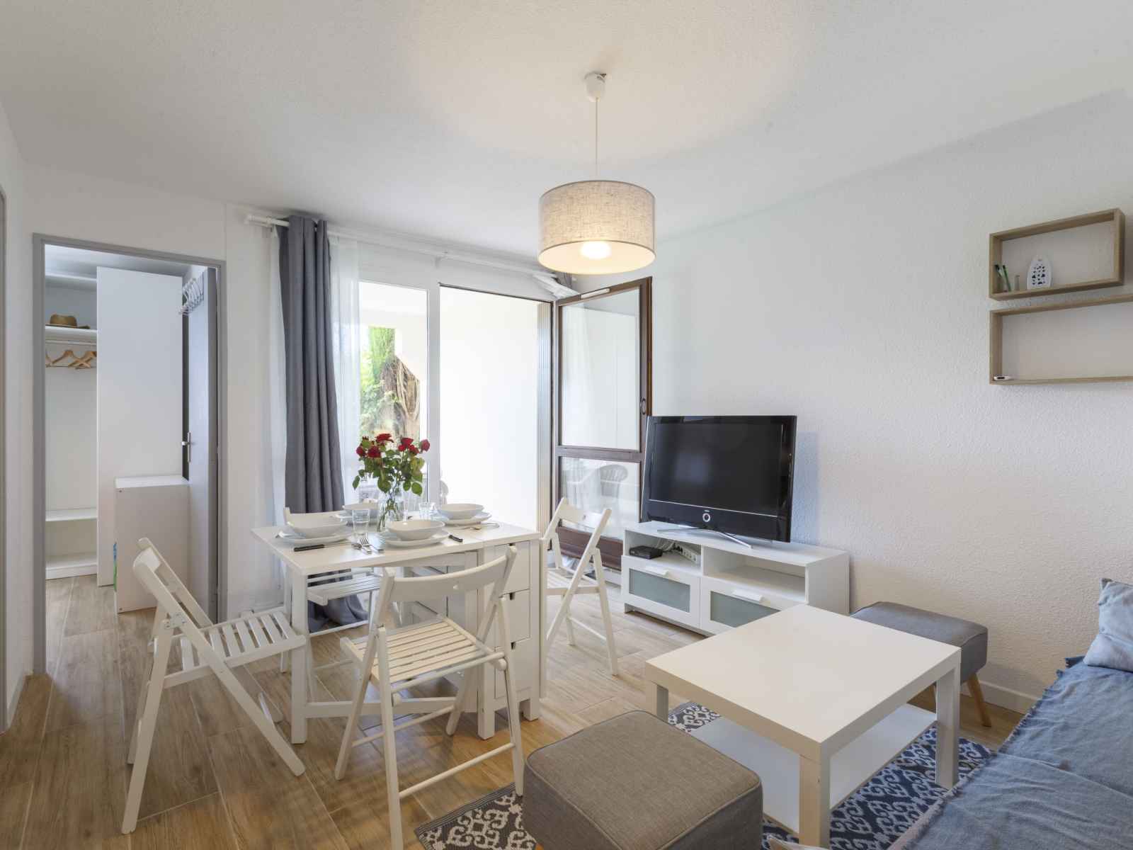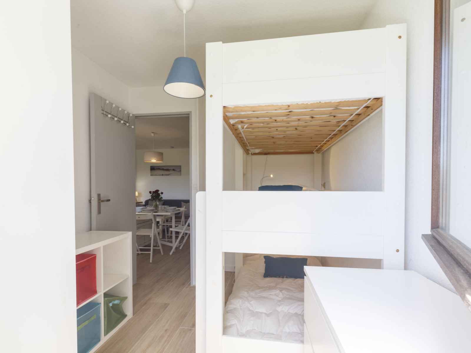 Apt 2 pièces 26 m2, au rez-de-chaussée. logement idéal pour 2 adultes + 2 enfants. rénové en 2018: séjour/salle à manger avec 1 divan-lit double (1 x 160 cm, longueur 190 cm), tv (écran plat). sortie sur la terrasse. 1 chambre d'enfants avec 1 x 2 lits superposés (90 cm, longueur 190 cm). coin cuisine (2 plaques de cuisson,