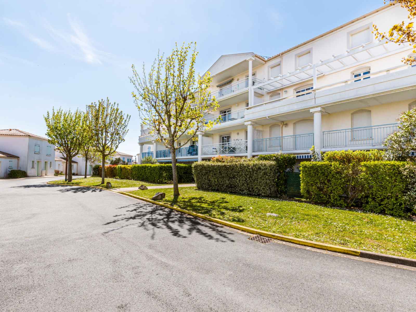 Belle résidence "les hautes folies", de 3 étages, année de construction 2002, environnée par les arbres. 30 maisons dans la résidence. 122 appartements dans la résidence. dans la localité, à 1 km du centre de vaux sur mer, situation tranquille dans un quartier résidentiel, à 600 m de la mer, à 600 m de la plage. en commun: parc 4'000