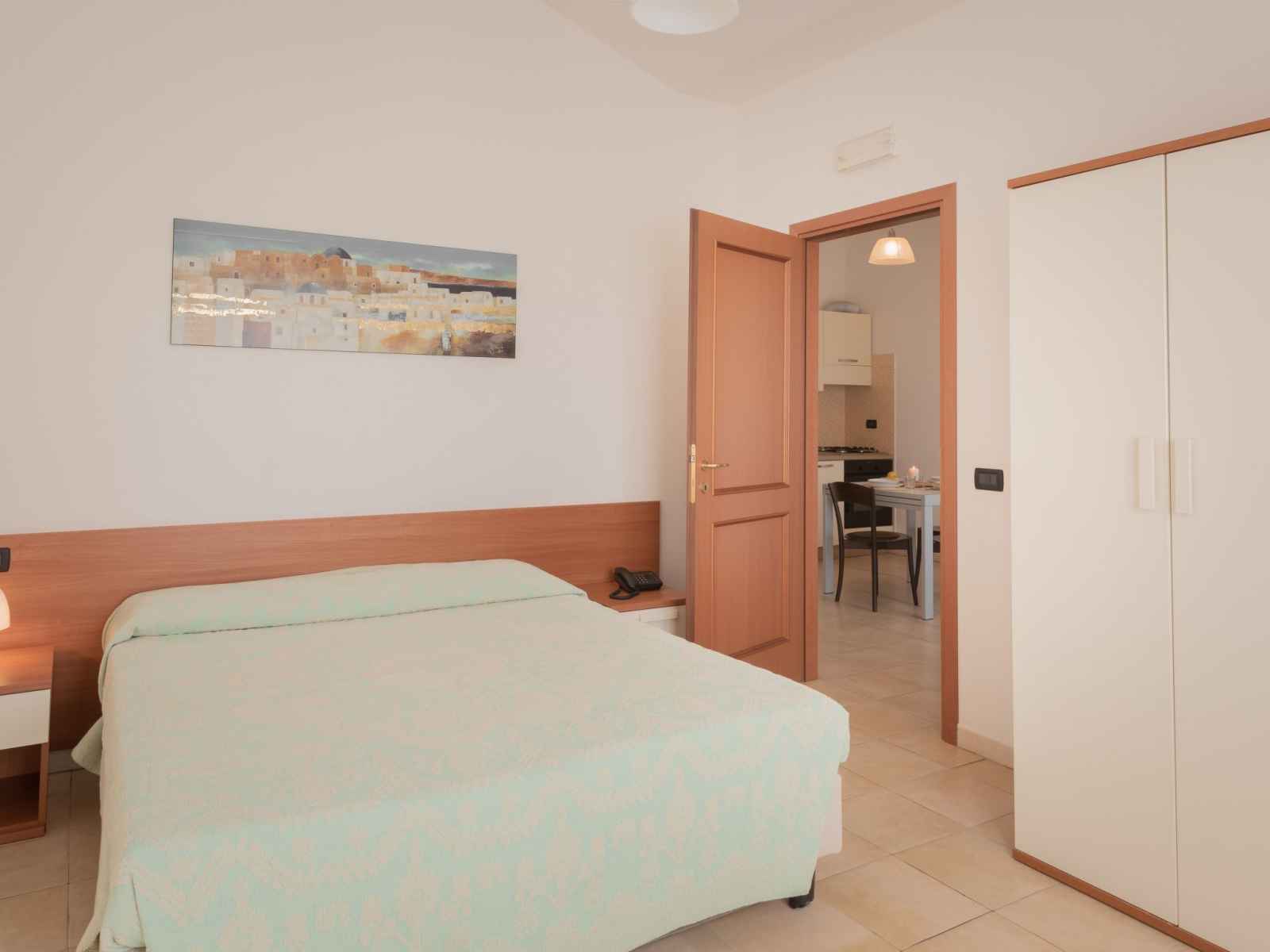 Apt 2 pièces 33 m2, à l'étage supérieur. aménagement fonctionnel: séjour/chambre à coucher avec 1 couchage, table pour les repas et tv. sortie sur le balcon. 1 chambre avec 1 lit double. coin cuisine (lave-vaisselle, 4 feux, grille-pain, bouilloire électrique, micro-ondes). douche/wc. chauffage électrique, air-conditionné. balcon.