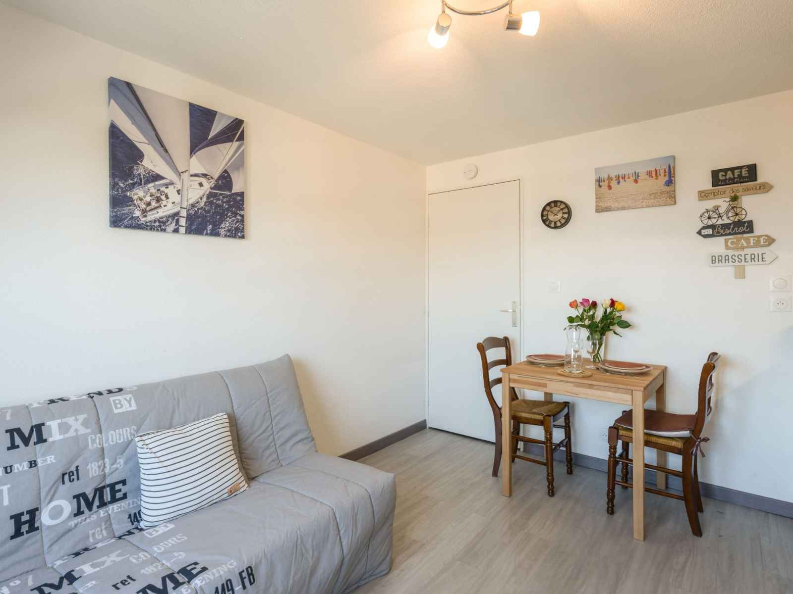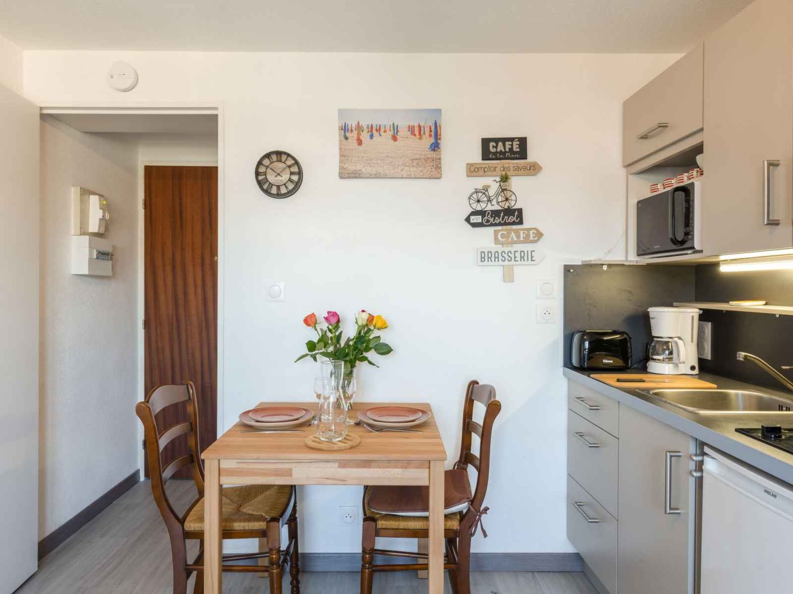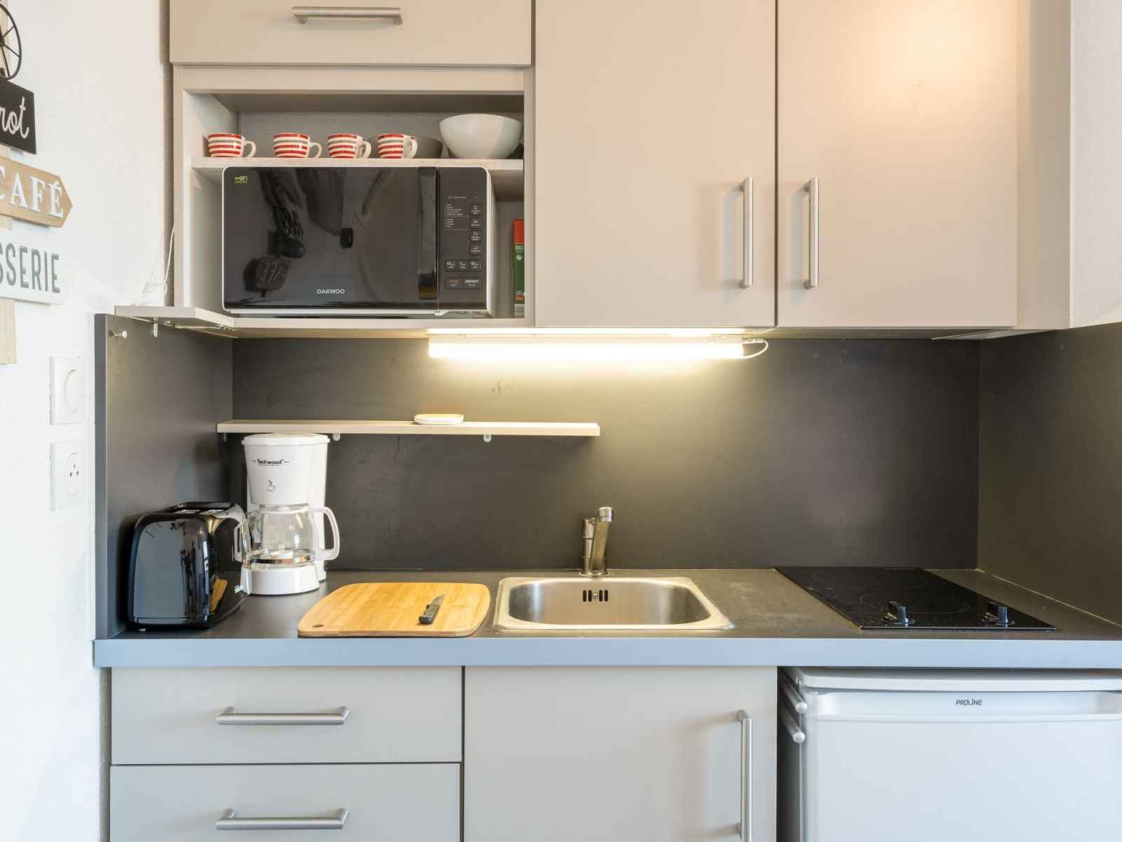 Apt 2 pièces 20 m2 au 5ème étage, situation nord. séjour/salle à manger avec tv (écran plat). 1 chambre avec 1 grand-lit (140 cm, longueur 190 cm), bain/wc. coin cuisine (2 plaques vitrocéramiques, grille-pain, bouilloire électrique, micro-ondes, cafetière électrique). chauffage électrique, chauffe eau. petit balcon 1 m2, situation