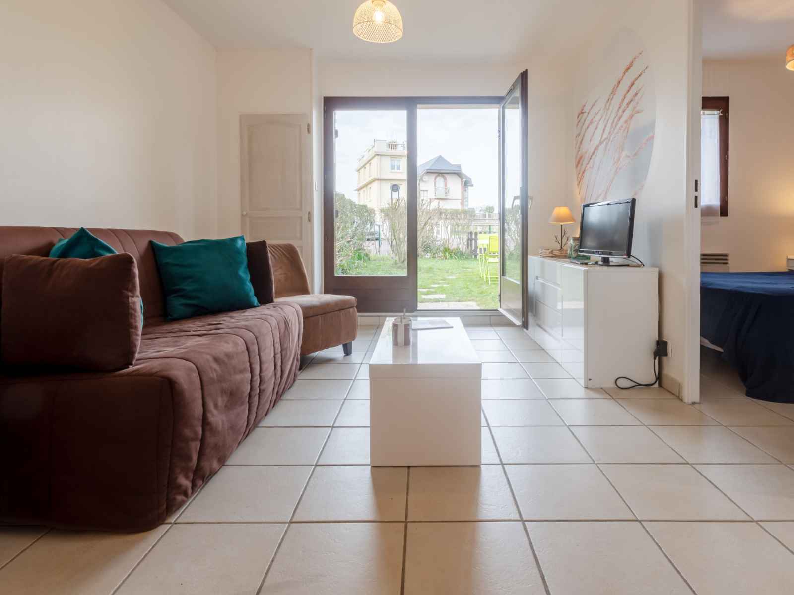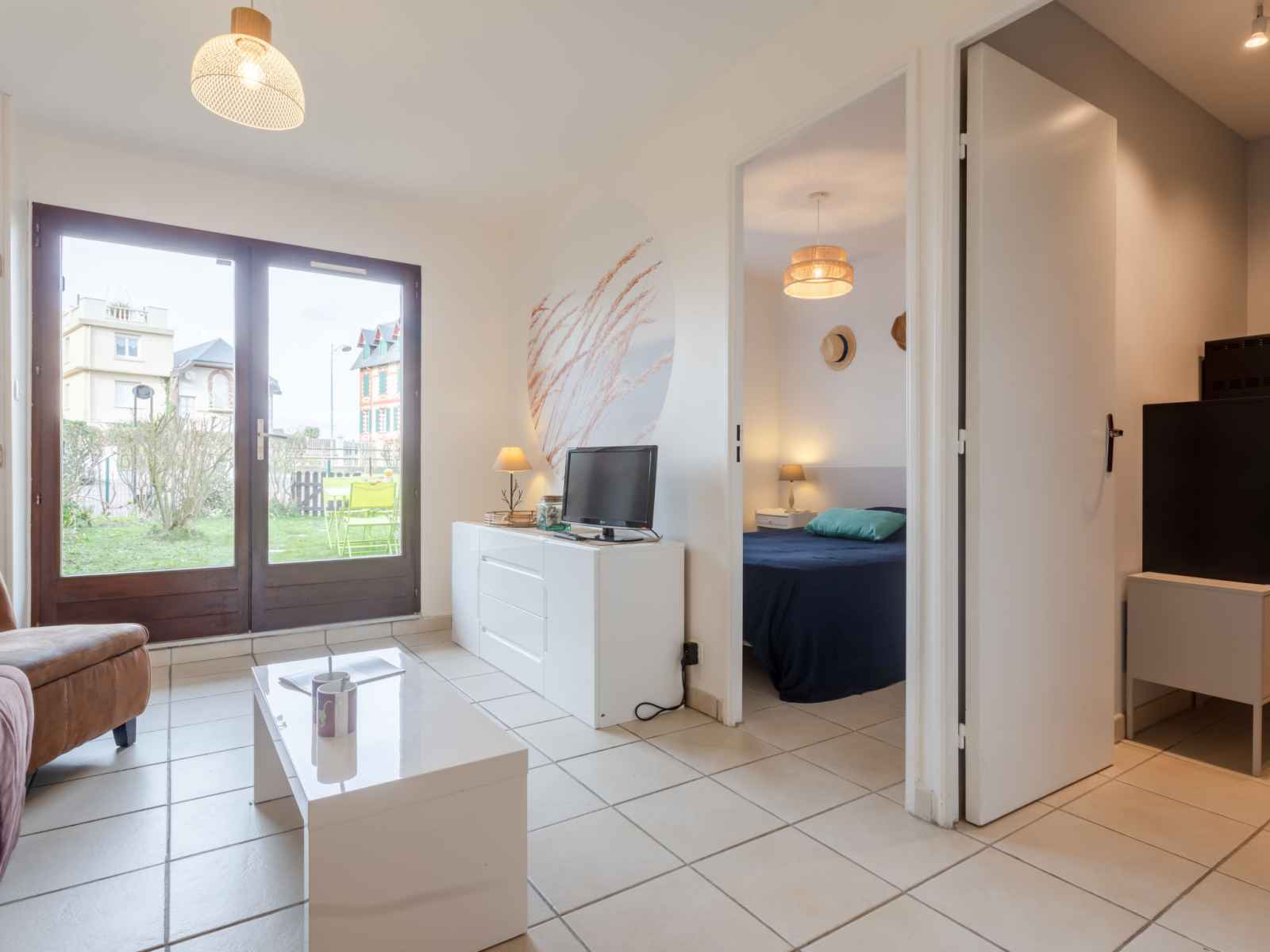 Apt 2 pièces 30 m2, au rez-de-chaussée, situation nord. séjour/salle à manger avec 1 divan-lit double (1 x 140 cm, longueur 190 cm), tv (écran plat). sortie sur le jardin, sur la terrasse. 1 chambre avec 1 grand-lit (1 x 140 cm, longueur 190 cm). cuisine (four, 2 plaques vitrocéramiques, grille-pain, micro-ondes, cafetière électrique).