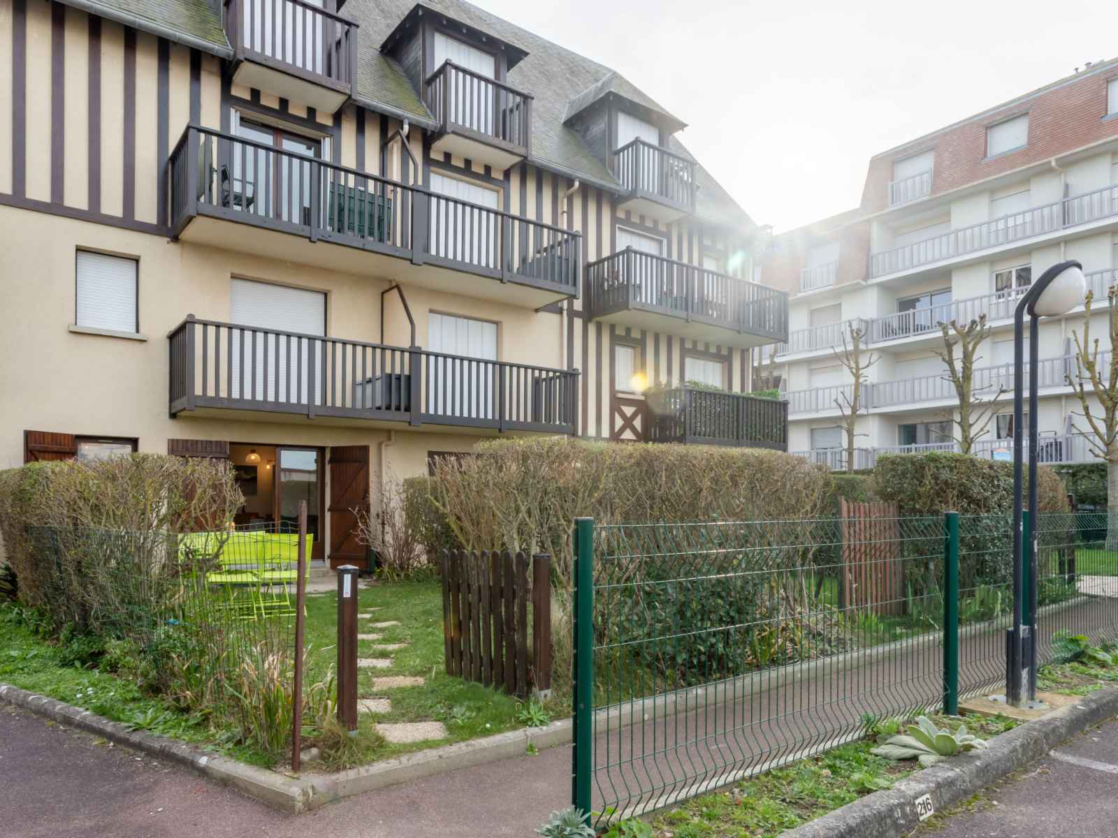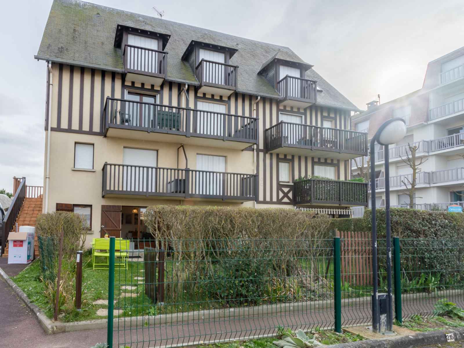 Résidence "le vert clos", de 3 étages. dans la localité, à 1 km du centre de villers-sur-mer, à 15 m de la mer, à 15 m de la plage, route à traverser. place de parking. magasins 1 km, centre commercial 100 m, restaurant 500 m, arrêt de bus "eglise" 1 km, centre thermal "thalasso de deauville" 7.1 km. terrain de golf (18 trous) 5.5 km.