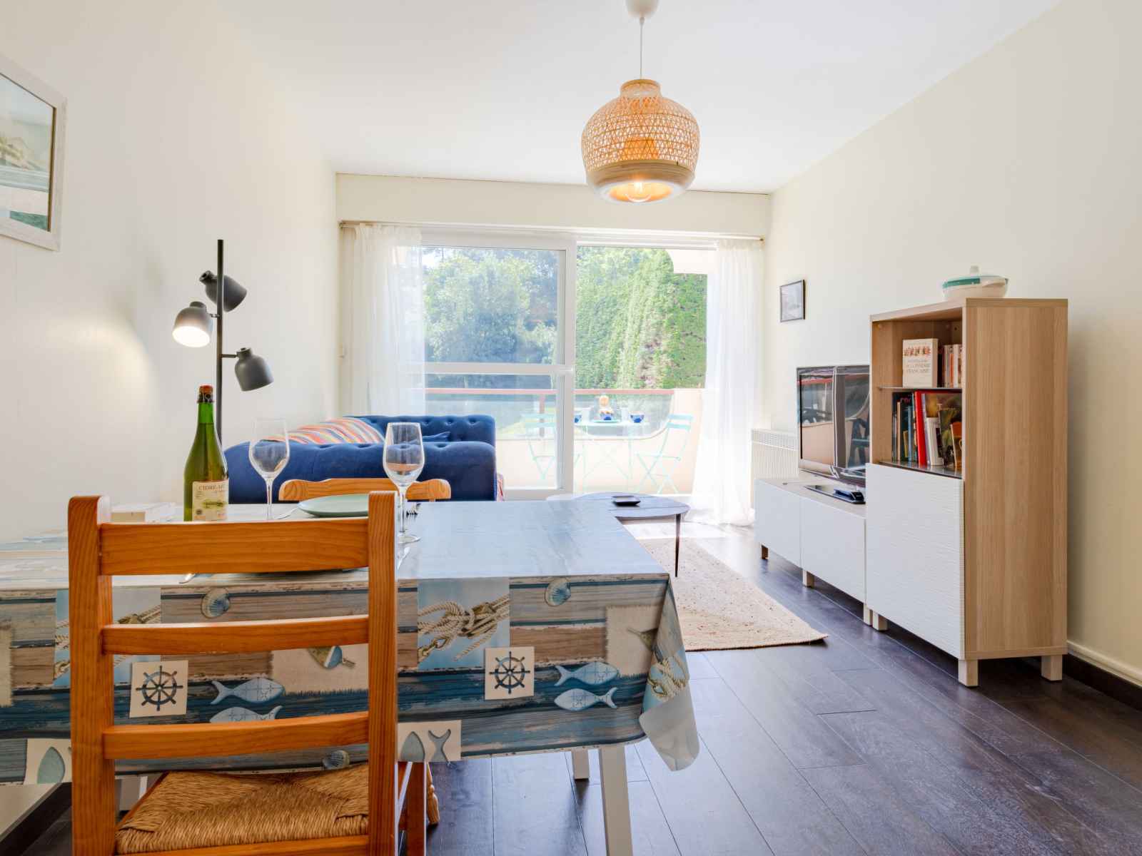 Apt 2 pièces 36 m2 au 2ème étage, situation est. séjour/salle à manger avec 1 divan-lit (140 cm, longueur 190 cm), tv (écran plat). sortie sur le balcon. 1 chambre avec 2 lits (80 cm, longueur 190 cm). cuisine ouverte (mini-four, 2 plaques à induction, grille-pain, bouilloire électrique, micro-ondes, cafetière électrique, capsules pour