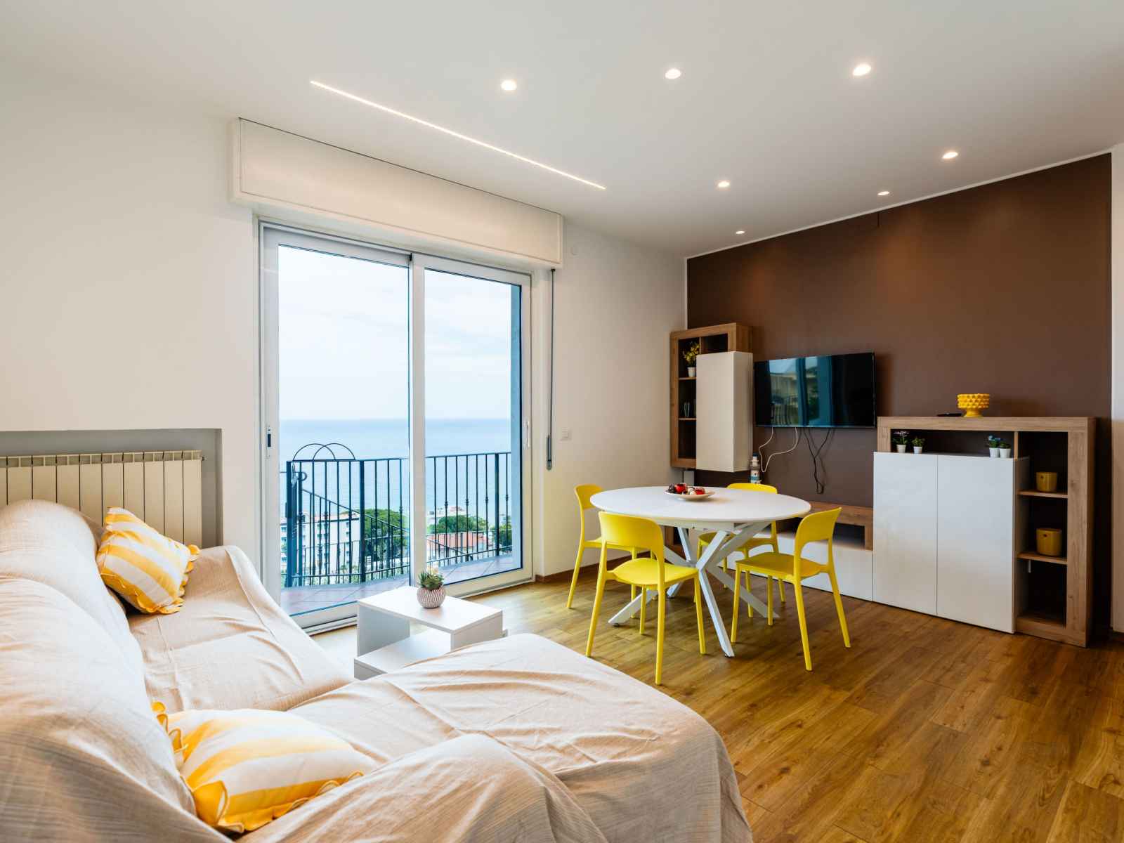 "ginestra", apt 3 pièces 75 m2, au rez-de-chaussée. aménagement moderne et de bon goût: séjour/salle à manger avec 1 divan-lit (140 cm, longueur 200 cm), tv. sortie sur le balcon. 1 chambre double. 1 chambre double. cuisine/séjour (four, lave-vaisselle, 4 plaques à induction, grille-pain, bouilloire électrique, micro-ondes, cafetière