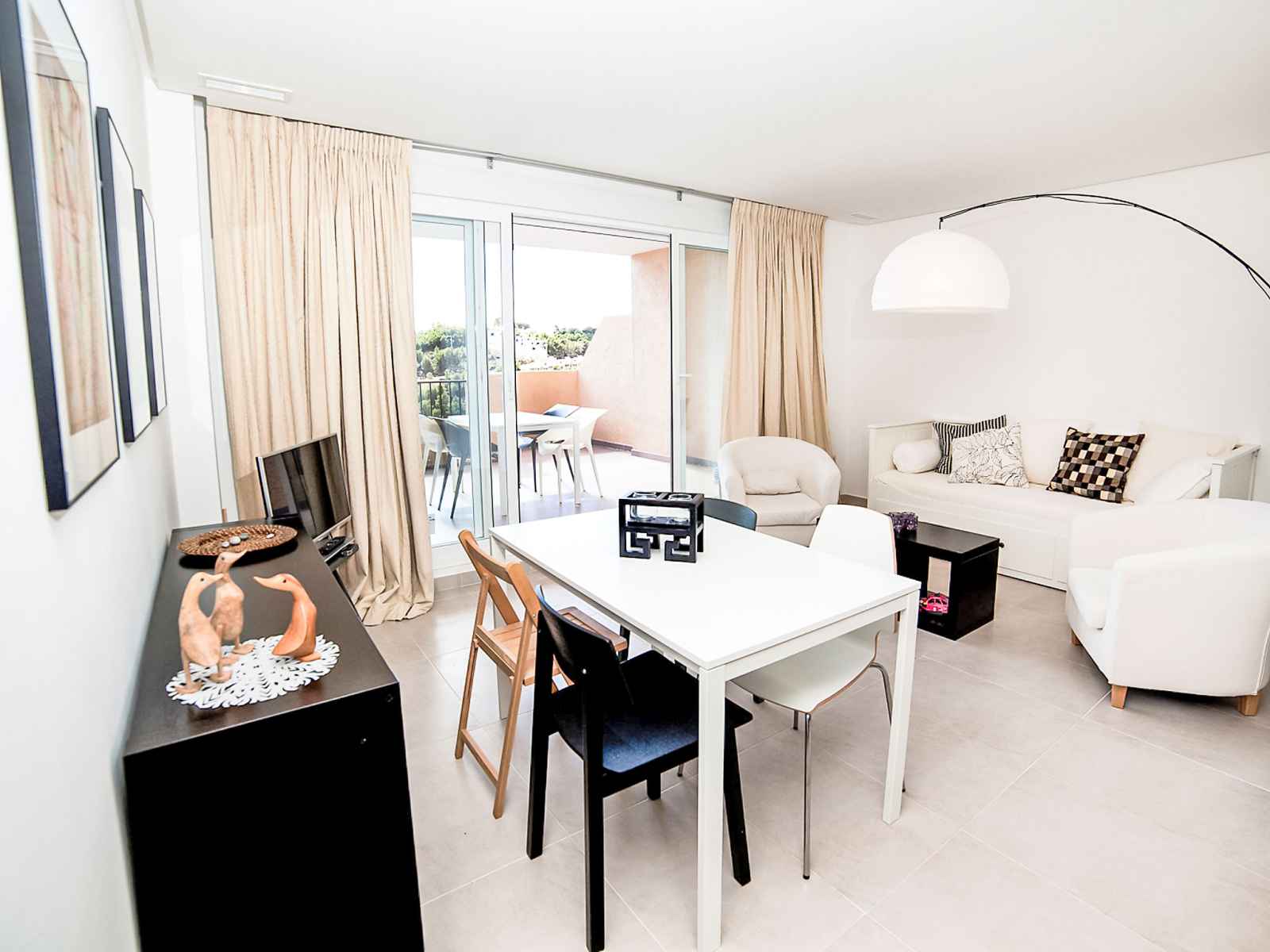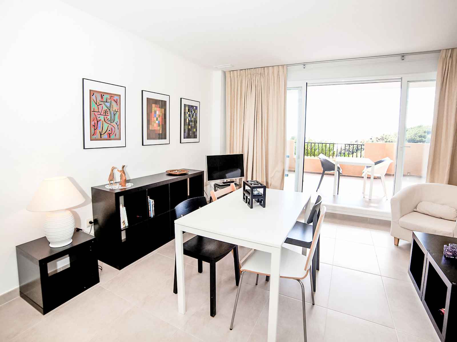"los lirios iii", apt 3 pièces 95 m2, au rez-de-chaussée. clair, aménagement confortable et moderne: séjour/salle à manger 24 m2 avec télévision numérique, air-conditionné et chauffage à air chaud. sortie sur la terrasse. 1 chambre avec 1 grand-lit (160 cm, longueur 200 cm), bain/douche/bidet/wc, air-conditionné et chauffage à air