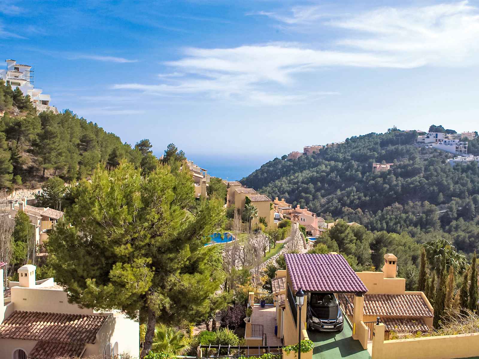 Altea hills: petite résidence accueillante "los lirios", année de construction 2011. À 7.5 km du centre d'altea, situation tranquille, à 3.9 km de la mer, à 3.9 km de la plage, dans une impasse, orientée sud. en commun: jardin propice à la détente, 2 piscines (20 x 7 m, profondeur 100 - 200 cm, disponibilité saisonnière: 01.jan. -