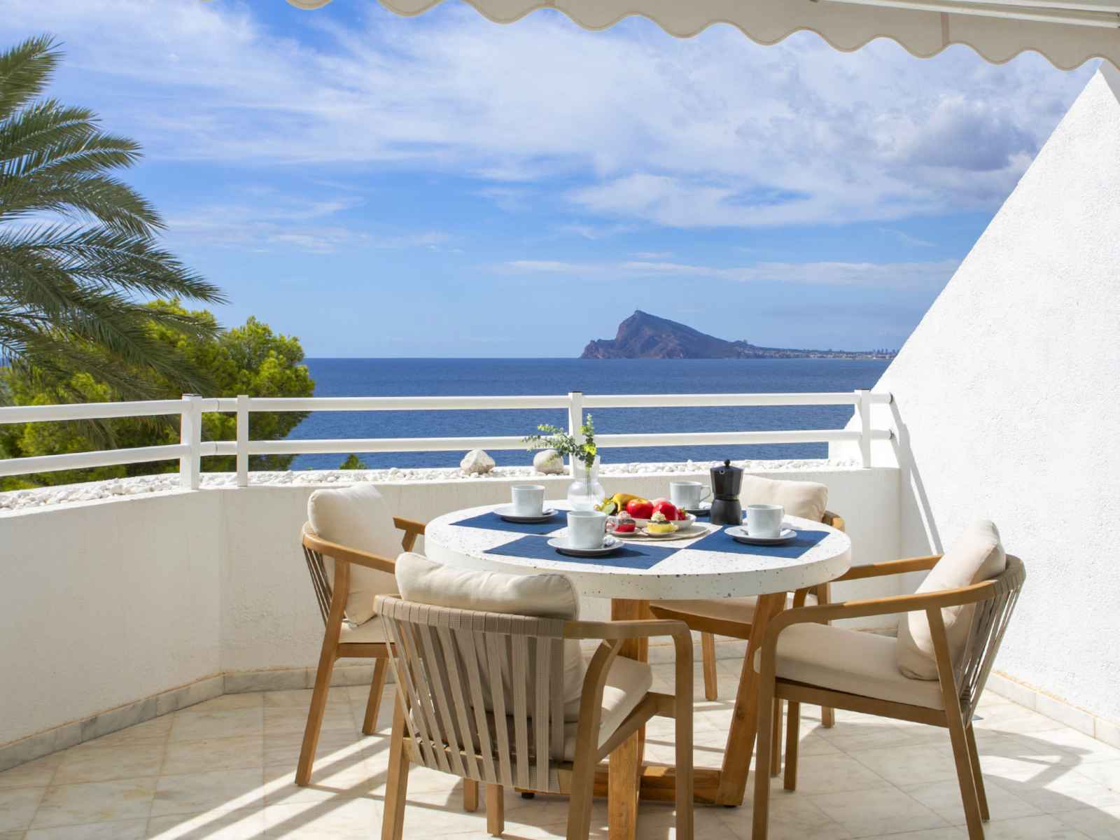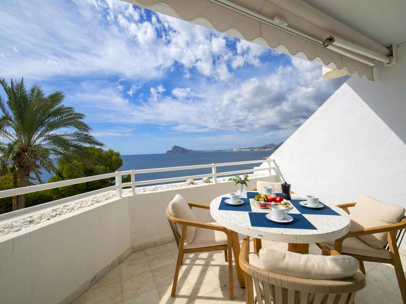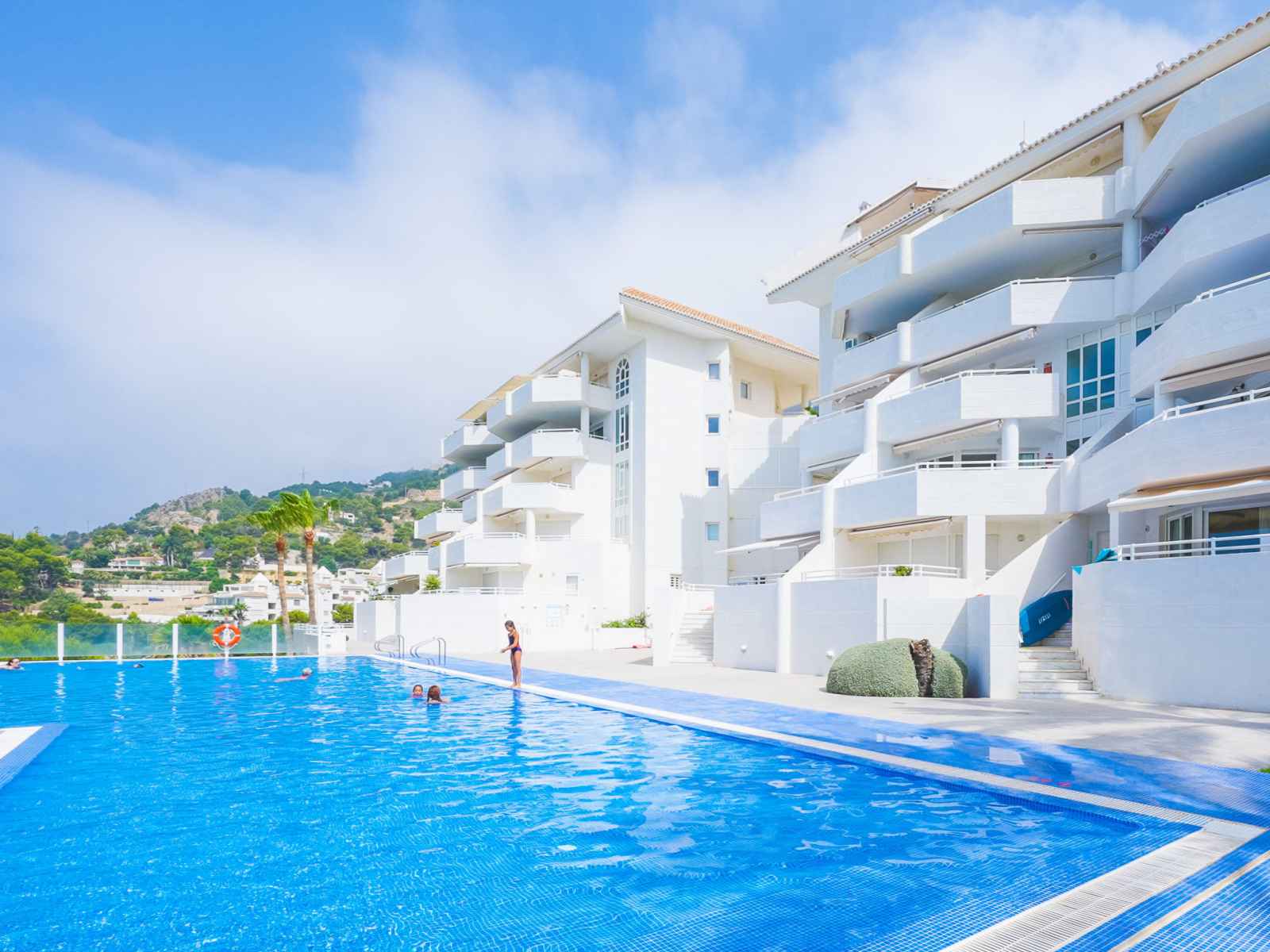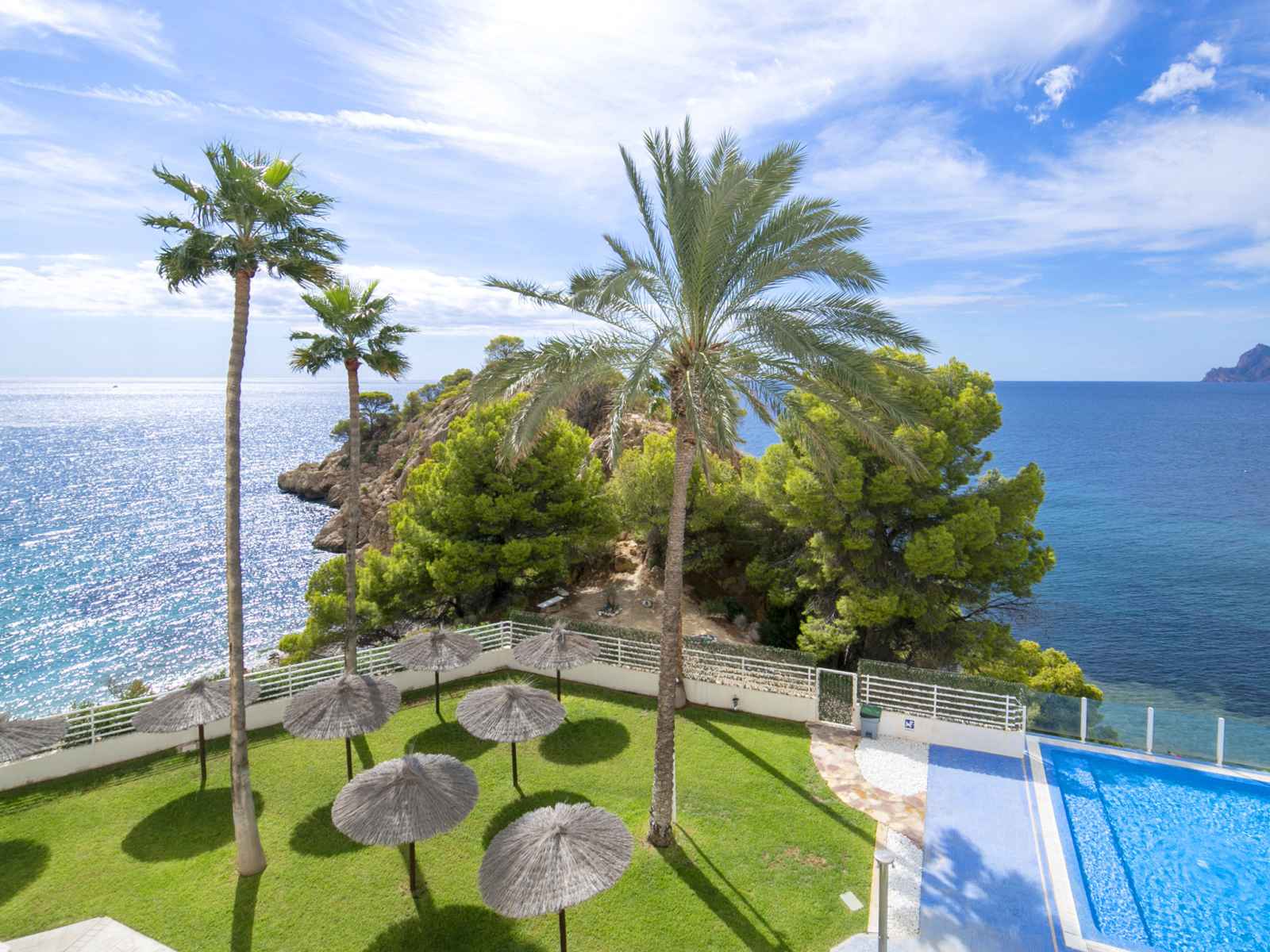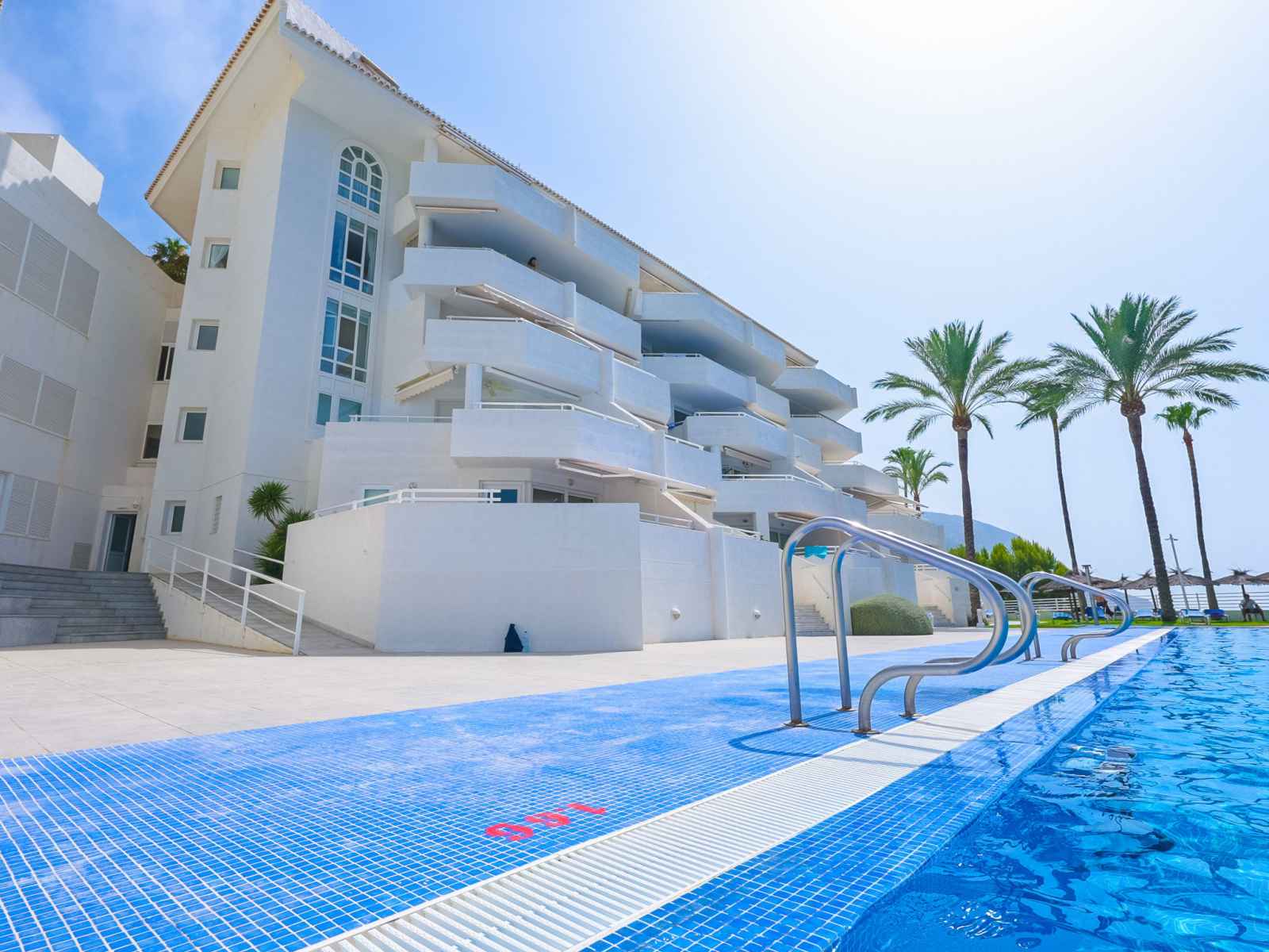 Mascarat: belle petite résidence "panorama". À 7 km du centre d'altea, à 6 km du centre de calpe, situation tranquille, ensoleillée, zone avec peu de trafic, juste au bord de la mer, juste au bord de la plage. en commun: terrain (clôturé), jardin avec pelouse, piscine (20 x 8 m, disponibilité saisonnière: 01.jan. - 31.dec.). douche