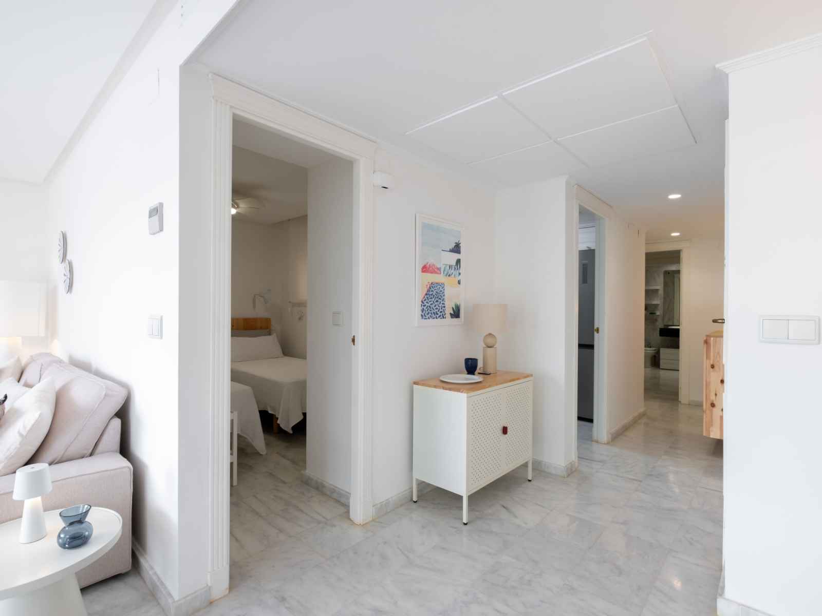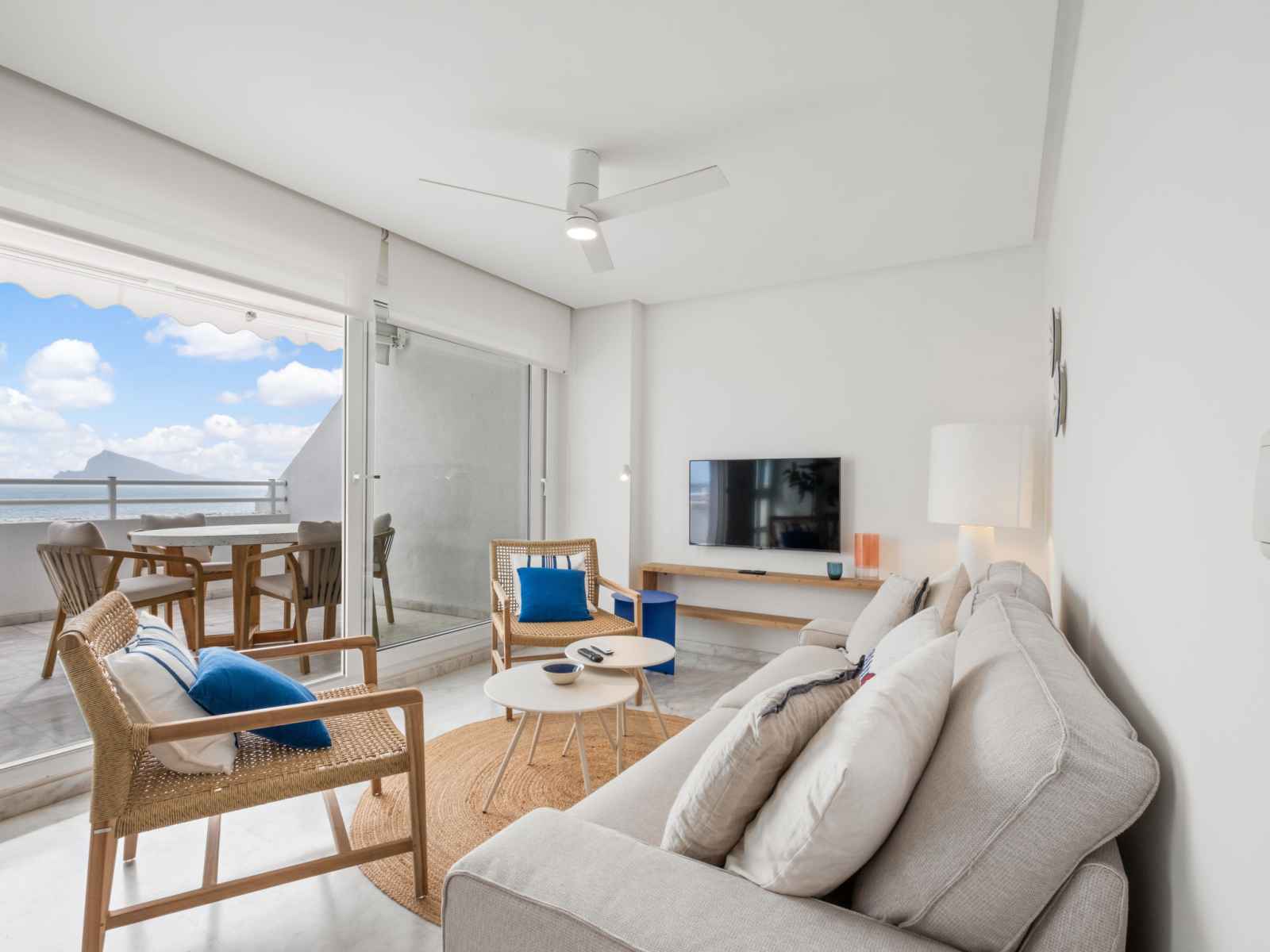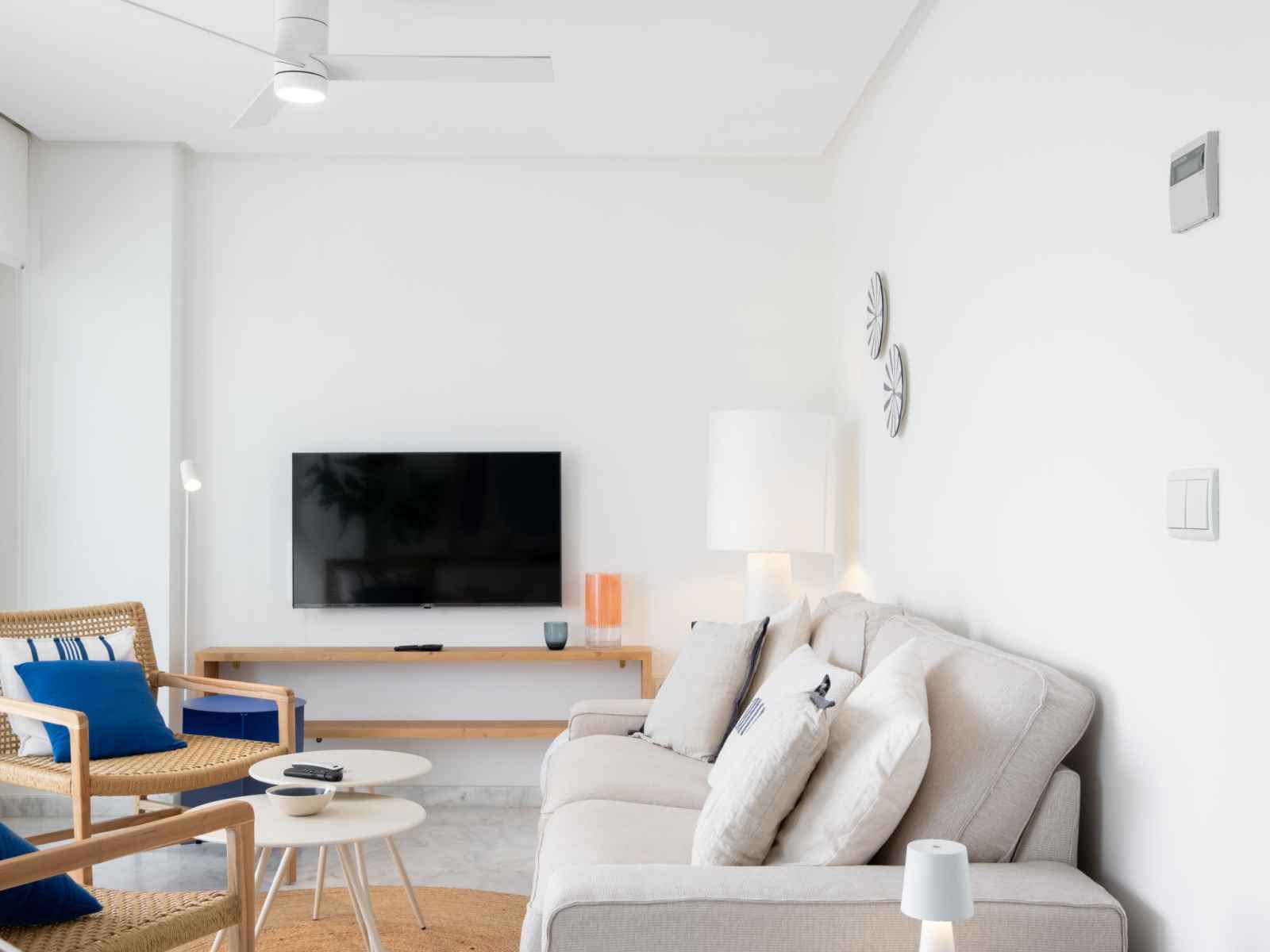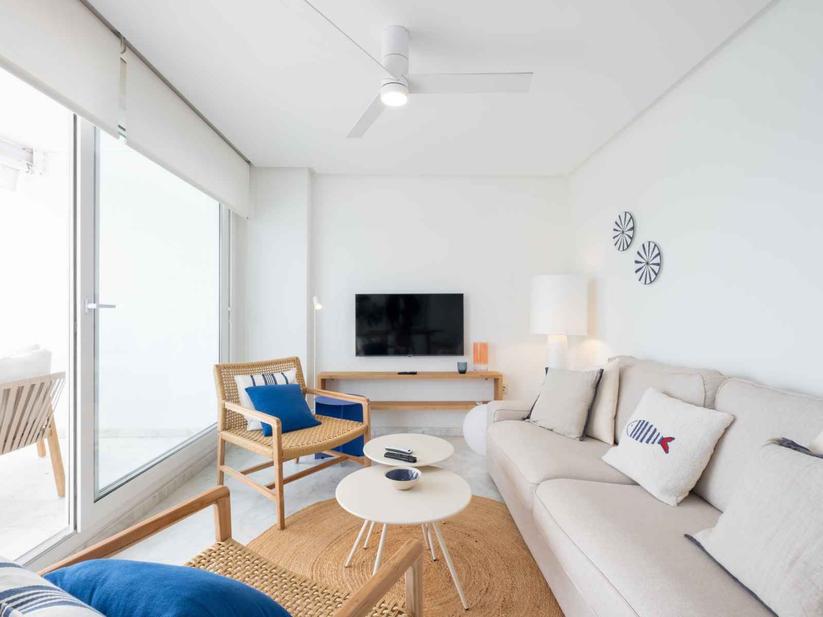 "panorama", apt 3 pièces 95 m2. spacieux et clair, aménagement confortable et agréable: séjour/salle à manger avec télévision numérique, air-conditionné, ventilateur et chauffage à air chaud. sortie sur la terrasse. 1 chambre avec 1 grand-lit (1 x 160 cm, longueur 200 cm), bain/wc, air-conditionné, ventilateur et chauffage à air chaud.