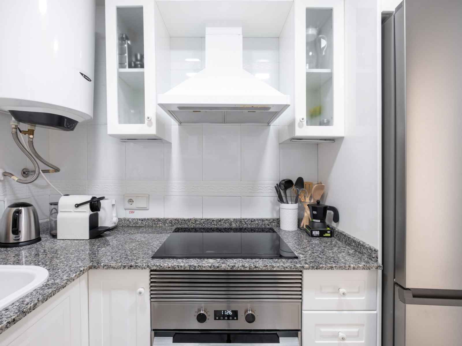 1 chambre avec 2 lits (90 cm, longueur 200 cm), air-conditionné, ventilateur et chauffage à air chaud. Cuisine (four, lave-vaisselle, 3 plaques à induction, grille-pain, bouilloire électrique, micro-ondes, cafetière électrique). Douche/WC. Meubles de terrasse. Vue panoramique sur la mer et la localité. A disposition: lave-linge, fer à repasser, chaise haute pour enfant, lit bébé jusqu'à 2 ans, sèche-cheveux. Internet (Connexion WIFI, gratuit). Place de parking No 50 (couvert). Veuillez noter: maison non-fumeur. VT-514767-A // Reg. Nr.: ESFCTU00000305300027626200000000000000000VT-514767-A9