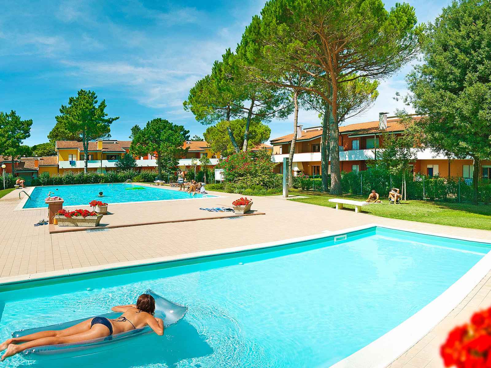 Beau complexe de vacances "villaggio nautilus", de 2 étages. dans le quartier de bibione-spiaggia, à 500 m du centre de bibione, à 13 km du centre de lignano, à 100 km du centre de venezia, à 1 km de la mer. en commun: terrain avec pelouse et arbres, piscine (20 x 10 m, disponibilité saisonnière: 23.mai. - 12.sep.). bassin pour les enfants.