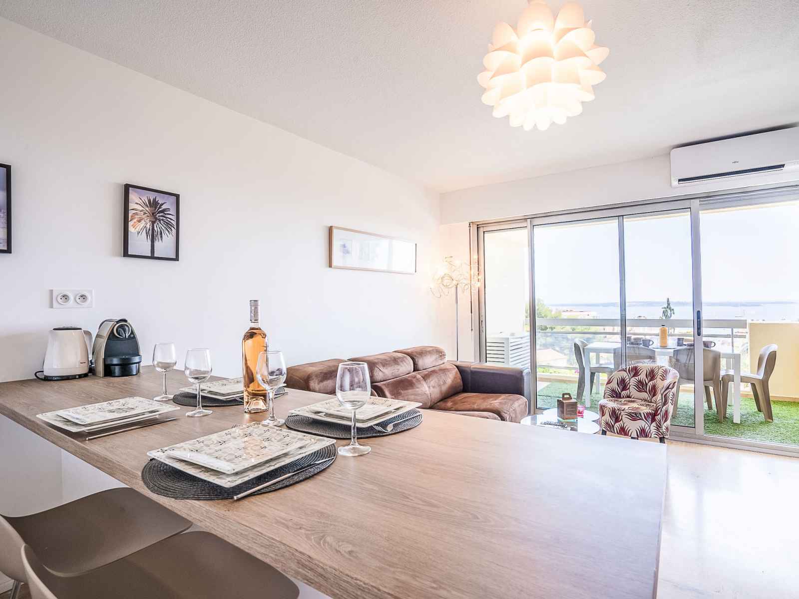Apt 3 pièces 55 m2 au 3ème étage. aménagement confortable et agréable: séjour/salle à manger avec tv (écran plat), air-conditionné. sortie sur la terrasse. 1 chambre avec 1 grand-lit (160 cm, longueur 200 cm). 1 petite chambre avec 1 lit gigogne (2 pers. 2 x 70 cm, longueur 180 cm). cuisine ouverte (four, lave-vaisselle, 2 plaques