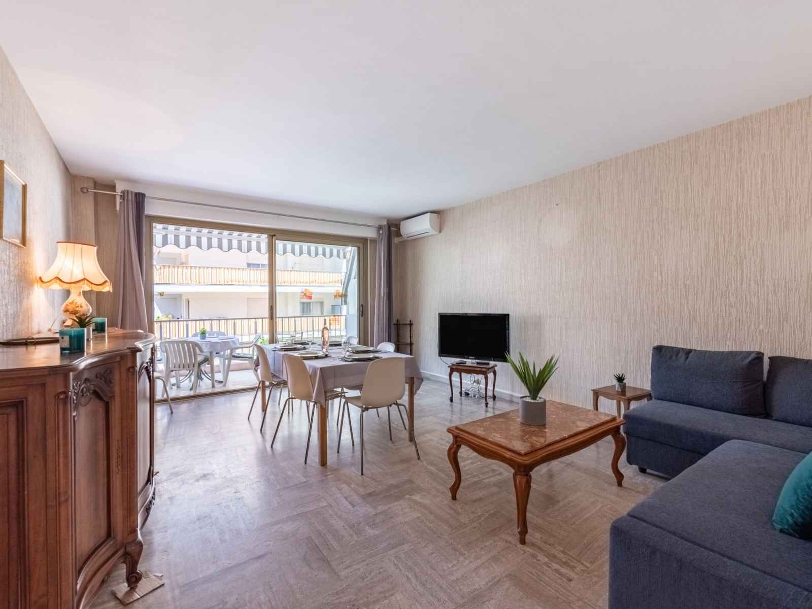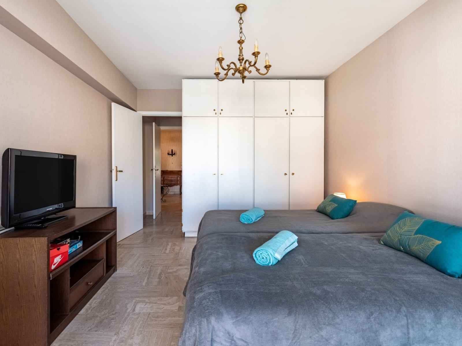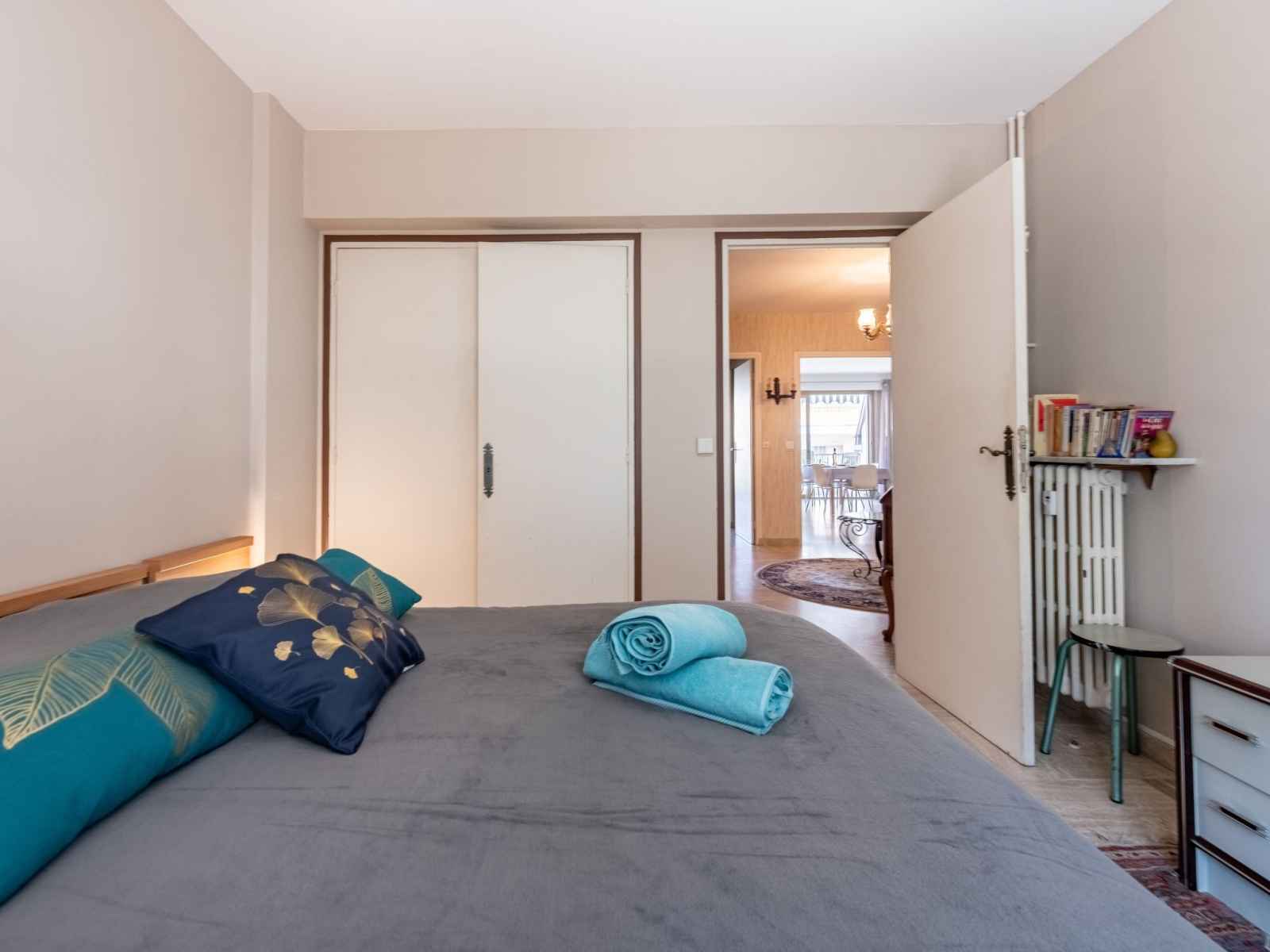 Apt 3 pièces 75 m2 au 3ème étage. aménagement fonctionnel: séjour/salle à manger avec 1 divan-lit double (1 x 140 cm, longueur 190 cm), tv (écran plat). sortie sur la terrasse. 1 chambre avec 2 lits (90 cm, longueur 190 cm), tv et air-conditionné. sortie sur la terrasse. 1 chambre avec 1 grand-lit (1 x 140 cm, longueur 190 cm),