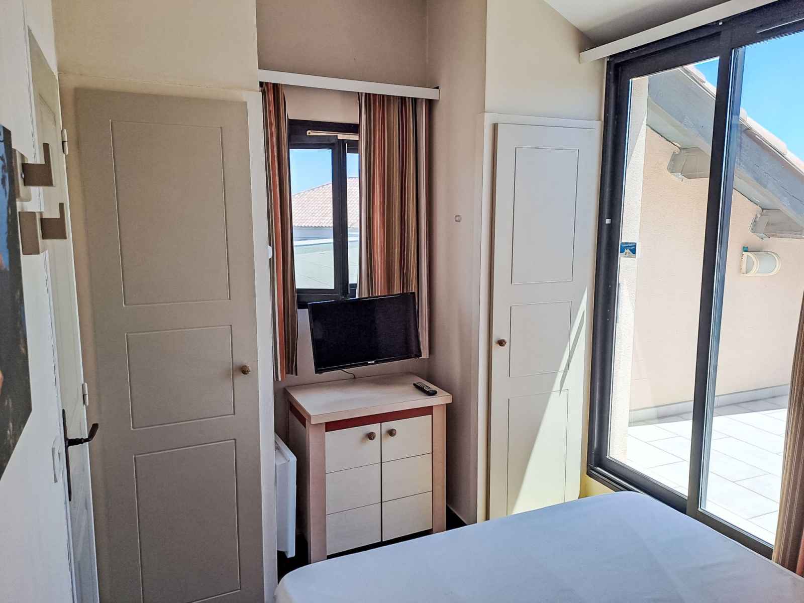 Appartement sur 2 niveaux 3 pièces 40 m2 au 2ème étage. aménagement confortable et agréable: séjour/salle à manger avec baie vitrée avec tv et air-conditionné. sortie sur la terrasse. 1 petite chambre avec 1 x 2 lits superposés (90 cm, longueur 190 cm). cuisine ouverte (lave-vaisselle, 4 plaques à induction, micro-ondes, cafetière