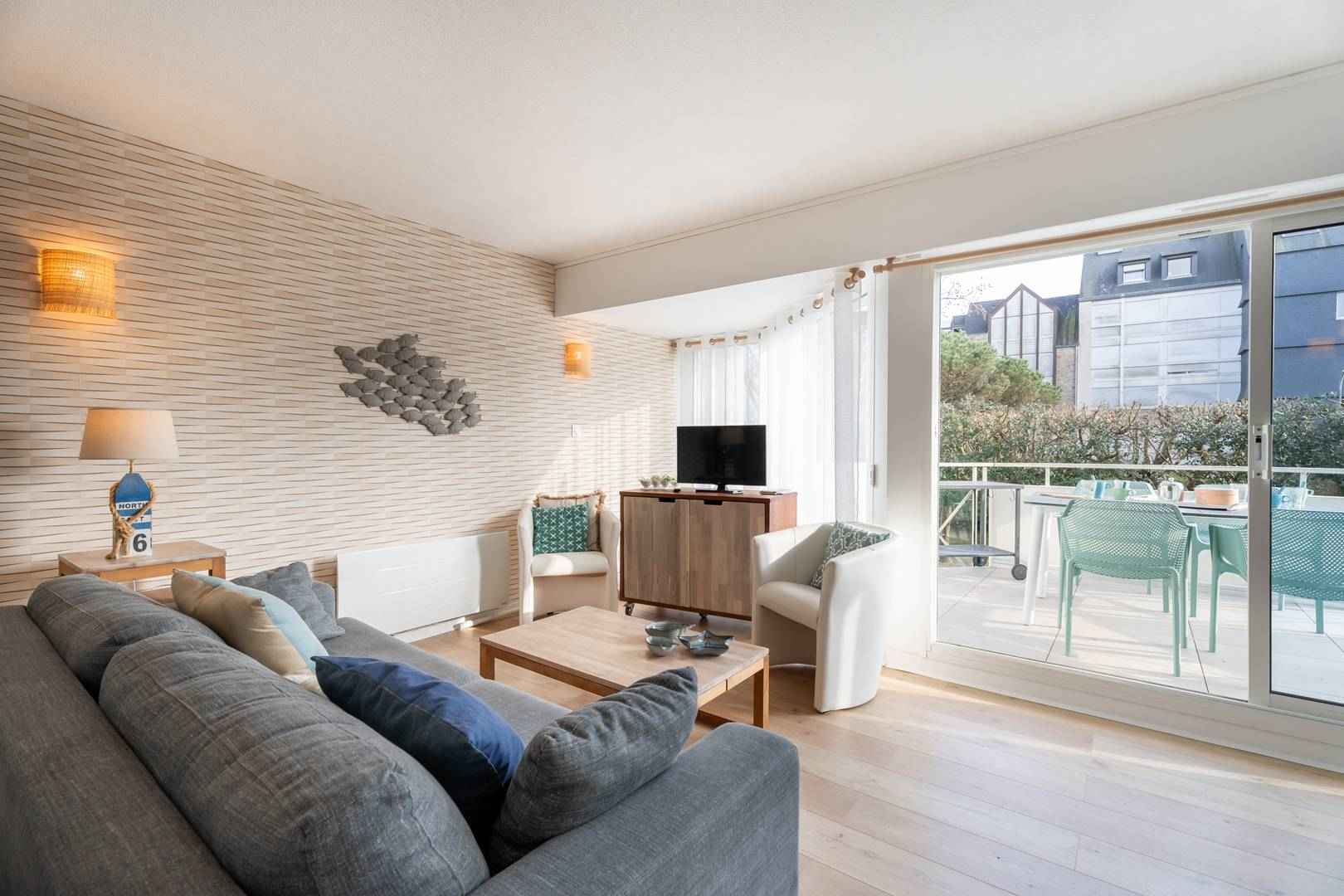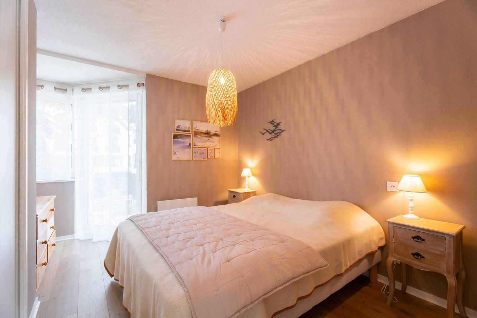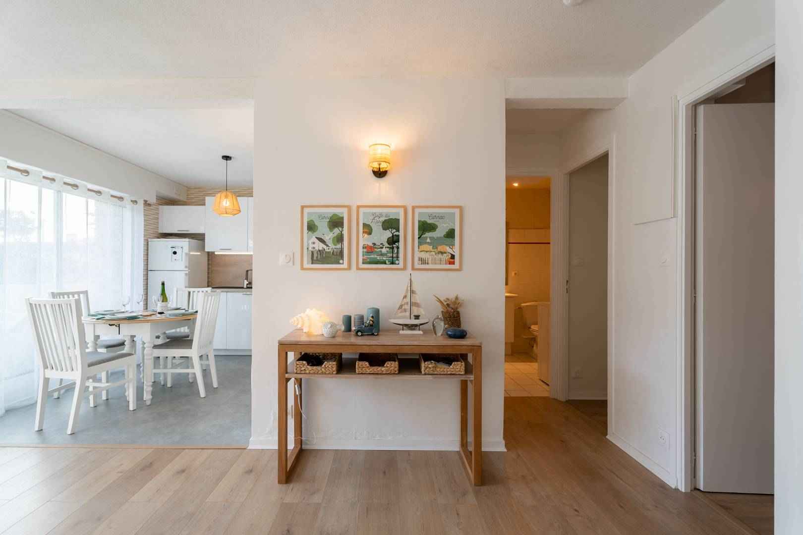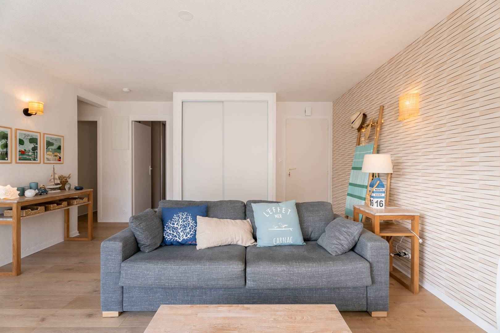 Au centre de carnac plage, à 150m de la grande plage, bel appartement 3 pièces (env. 61m²) pour 6 personnes, avec vue sur le jardin de la résidence, situé dans la résidence albion (2e étage, porte 6) :