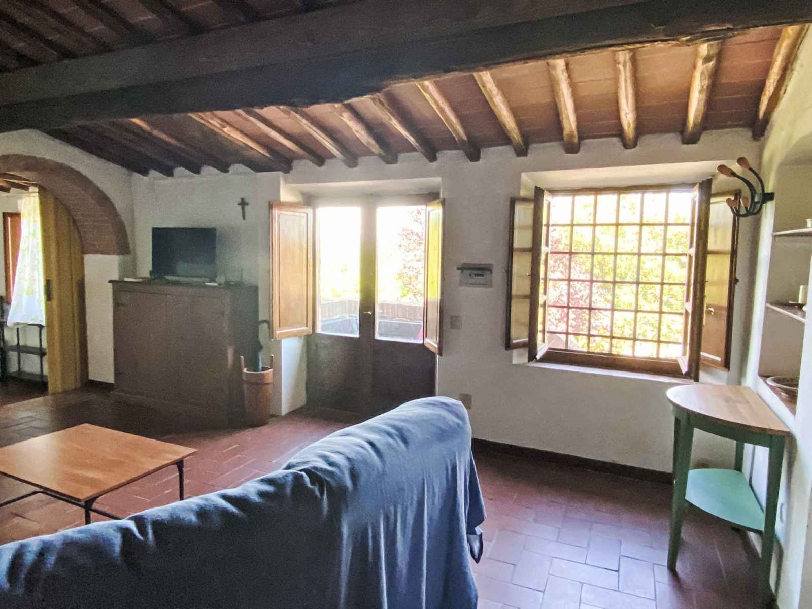 Castellina in chianti: immeuble ancien, historique "fiore di mandorlo", renové. À 4 km du centre de castellina in chianti, situation isolée, ensoleillée, dans la verdure. a usage privé: terrain à l'état naturel, jardin, place de parking près de la maison. magasins 4 km, supermarché 4 km, arrêt de bus "chiantigiana" 2 km, piscine 3 km.