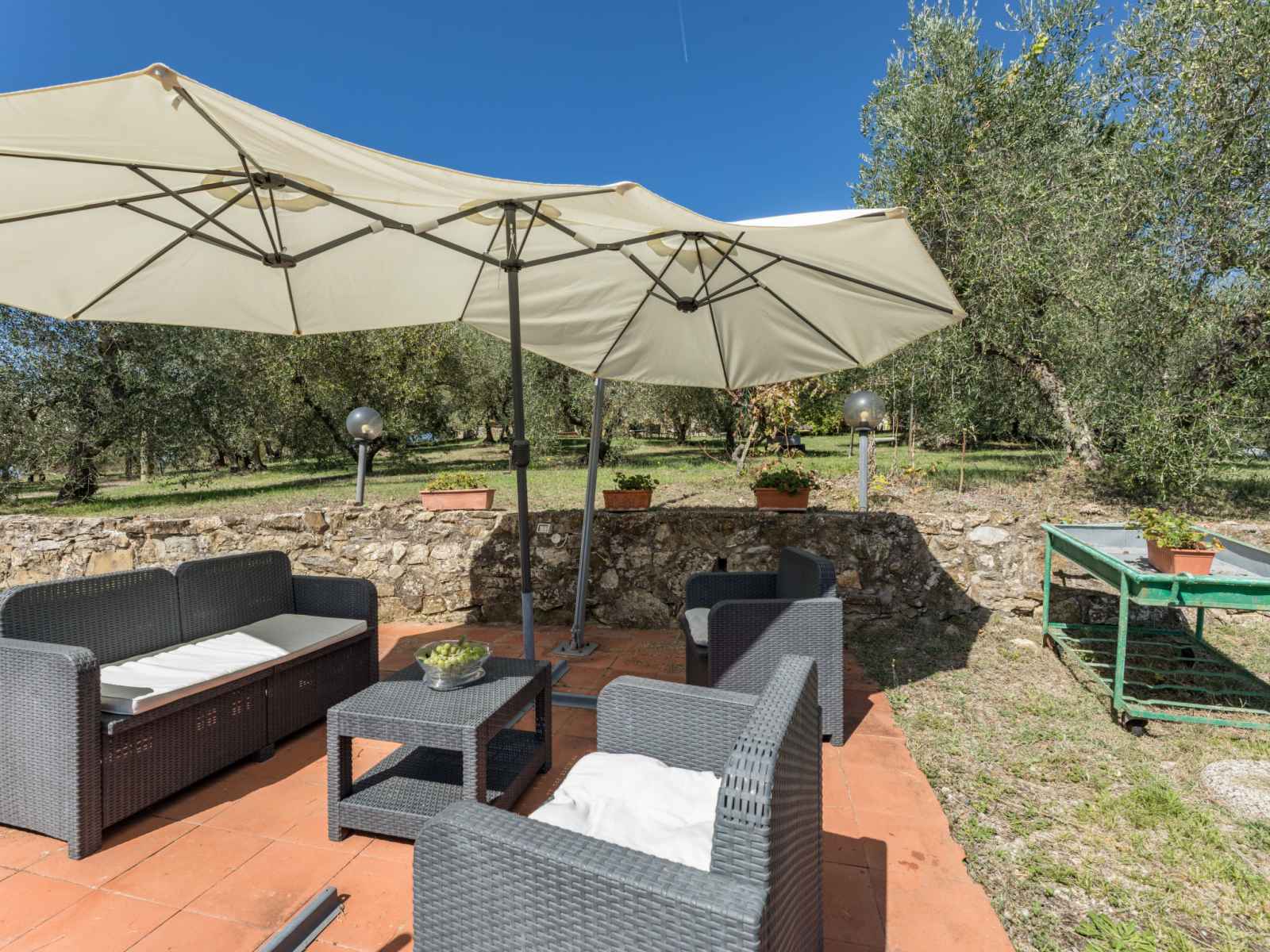 saisonnière: 01.mai. - 15.oct.). douche extérieure, jardinet, terrasse, meubles de jardin, barbecue, entretien de la piscine par le propriétaire/jardinier. infrastructures de la maison: réception, lave-linge (en commun). accès en voiture jusqu'à la maison par un chemin difficile de 2 km de long. place de parking (couvert) près de la maison. magasins 6 km, magasin d'alimentation 6 km, supermarché 6 km, restaurant 2 km, arrêt de bus "via chiantigiana" 2 km, gare ferroviaire "siens" 12 km. attractions à proximité: siena 12 km, greve in chianti 20 km, san gimignano 25 km, firenze 65 km. veuillez noter: voiture recommandée. Équipement pour bébés (inclus). vente locale de produits de la ferme. toutes les maisons/appartements sont aménagés individuellement.