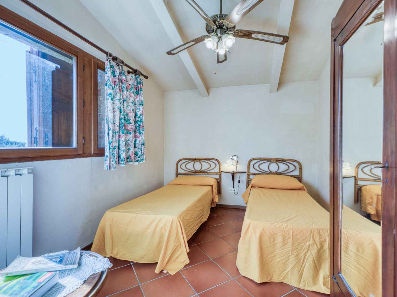 "foresta 4", apt 3 pièces 60 m2, au rez-de-chaussée. aménagement fonctionnel et rustique: séjour/salle à manger avec tv (écran plat). sortie sur le jardin, sur la terrasse. 1 chambre double avec ventilateur. sortie sur la terrasse. 1 chambre avec 2 lits (80 cm), ventilateur. cuisine ouverte (four, lave-vaisselle, 4 feux, bouilloire