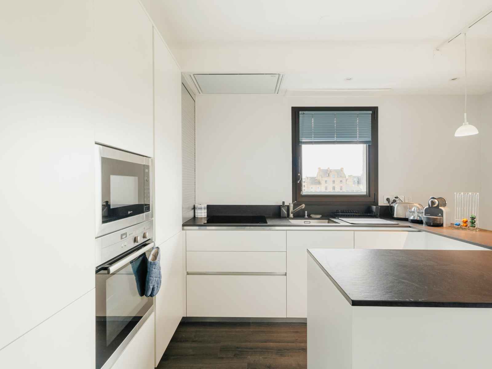 lave-vaisselle, 4 plaques à induction, grille-pain, bouilloire électrique, micro-ondes, congélateur, cafetière électrique, Capsules pour machine à café (Nespresso) (NON INCLUSES)). Douche, WC séparé. Chauffage électrique. Terrasse 6 m2, situation nord-ouest, terrasse 3 m2, situation ouest. Mobilier de balcon. Vue sur la mer. A disposition: lave-linge, sèche-linge, lit bébé, sèche-cheveux. Internet (Connexion WIFI, en sus). Veuillez noter: détecteur de fumée. Annonce d'un particulier (art 155, IV du CGI).