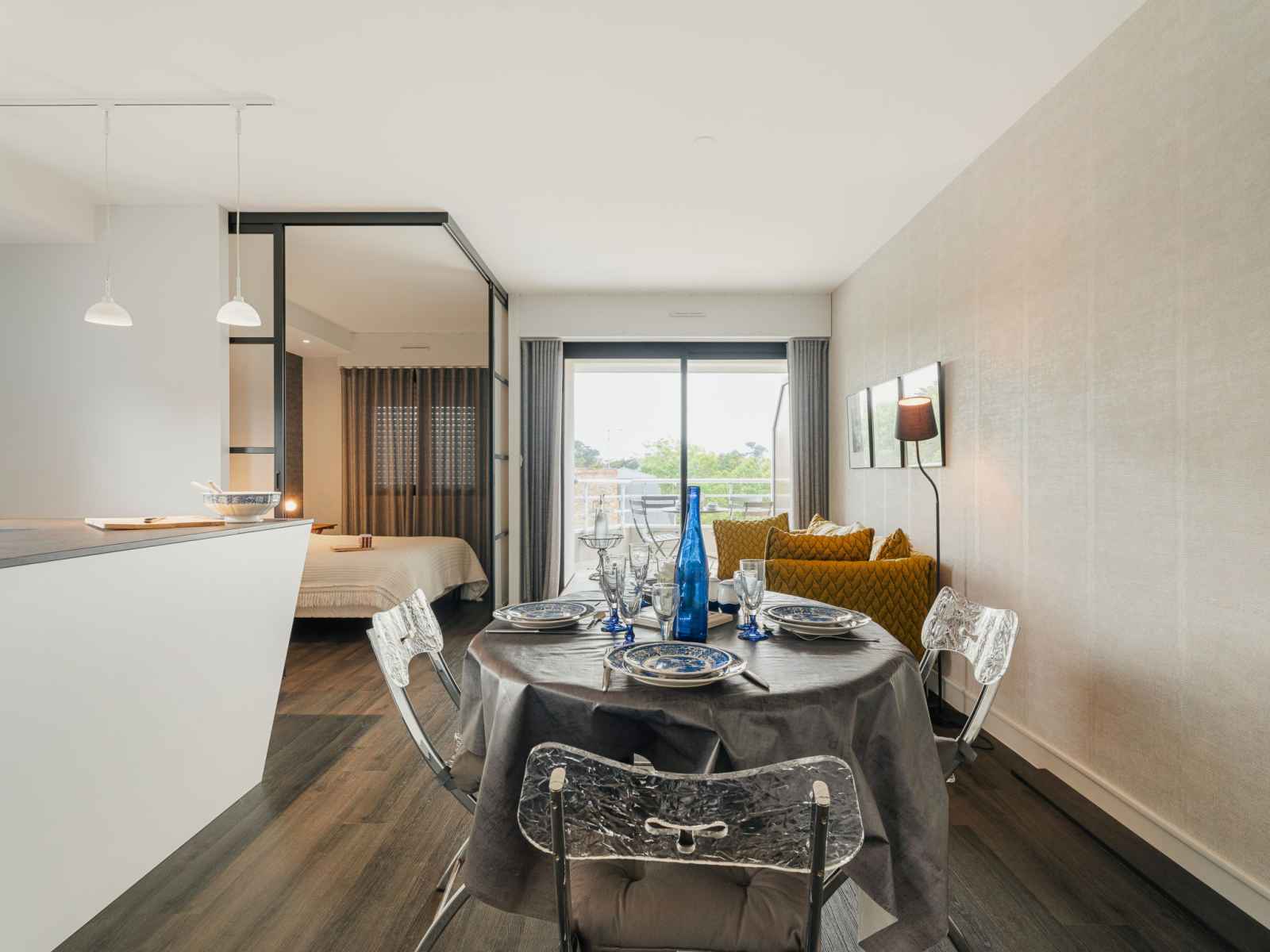 "le cap fréhel", apt 3 pièces 50 m2 au 3ème étage, situation nord-ouest. rénové en 2023: séjour/salle à manger. sortie sur le balcon. 1 chambre avec 1 grand-lit (1 x 140 cm, longueur 190 cm), tv (écran plat). sortie sur le balcon. 1 chambre avec porte coulissante avec 1 grand-lit (1 x 140 cm, longueur 190 cm). cuisine ouverte (four,
