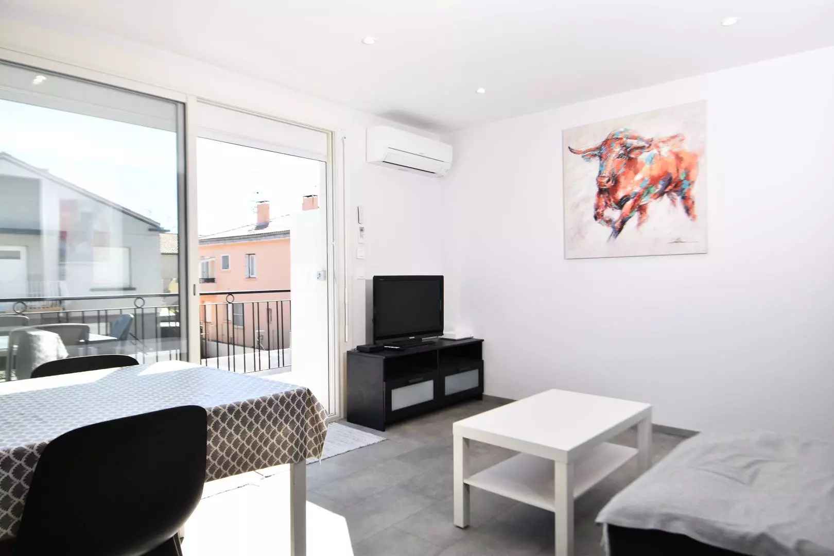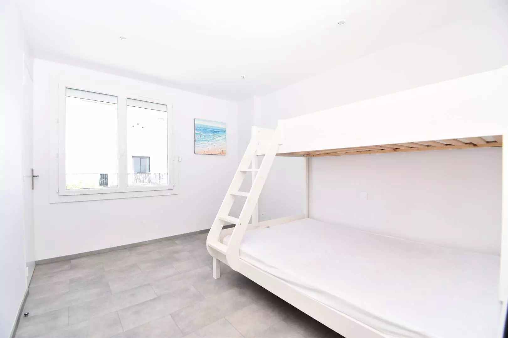 ensoleillée, vous permettra de profiter pleinement de votre séjour.Ce logement permet d accueillir 5 couchages grâce à un lit double superposé. Les commerces et la plage à proximité, vous pourrez visiter notre belle région sans avoir à prendre la voiture. Venez découvrir notre incontournable plage sauvage de l Espiguette ,le seaquarium et le plus grand port de plaisance d Europe à Port camargue.