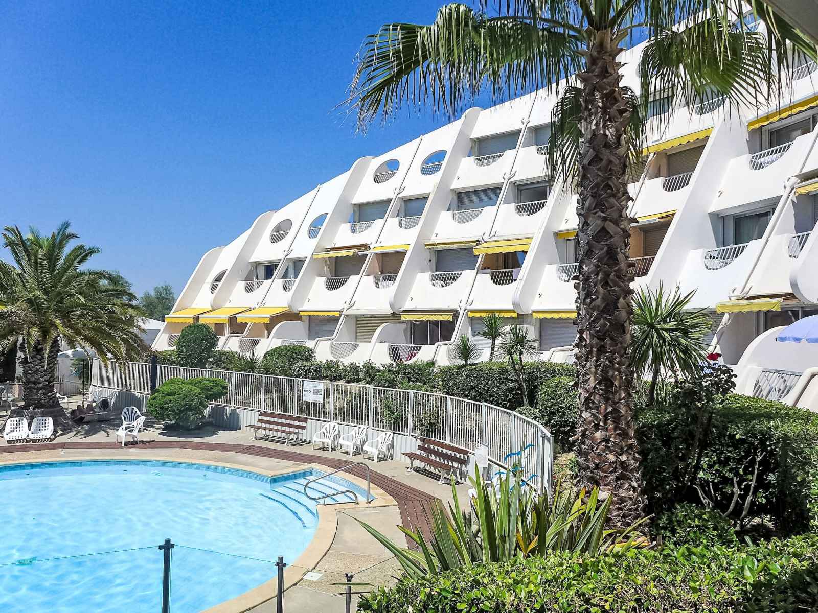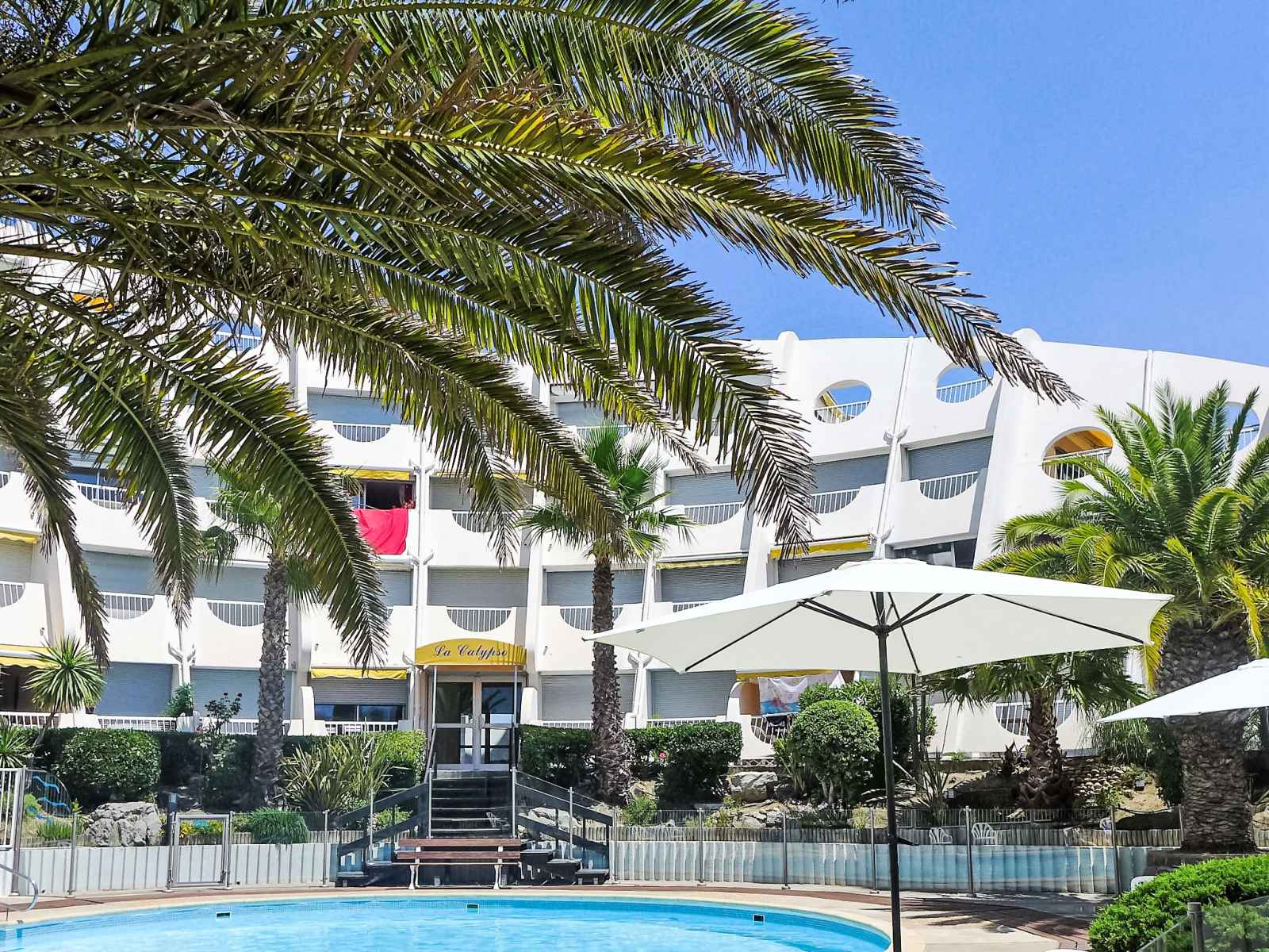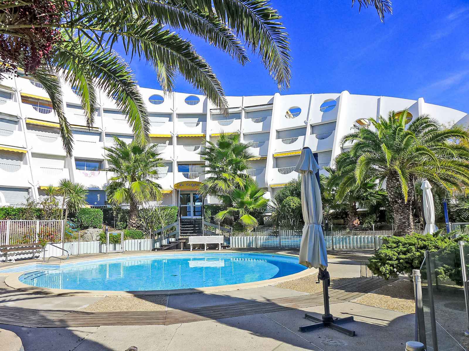 Résidence "la calypso", de 4 étages. dans le quartier de la motte du couchant, à 1 km du centre, à 50 m de la mer, à 40 m de la plage, accès direct à la plage. en commun: piscine (disponibilité saisonnière: 22.jun. - 30.aou. horaires d'ouverture de la piscine: 15:00-20:00). centre commercial 150 m, restaurant, arrêt de bus 400 m, gare