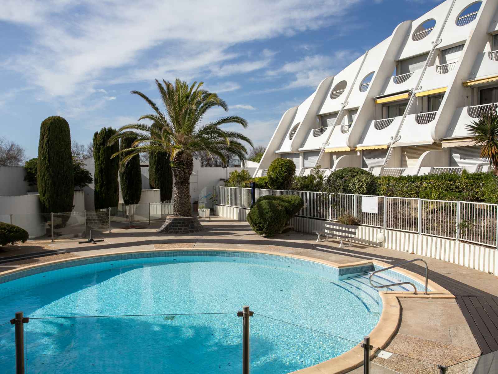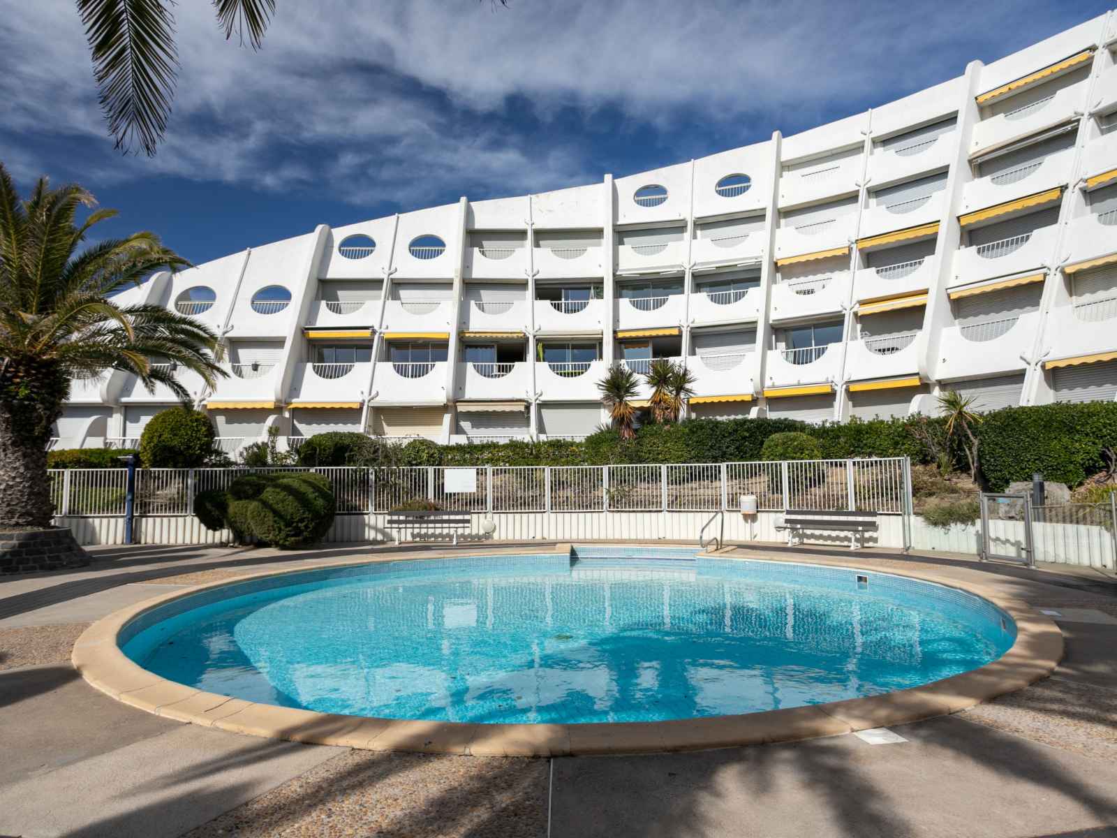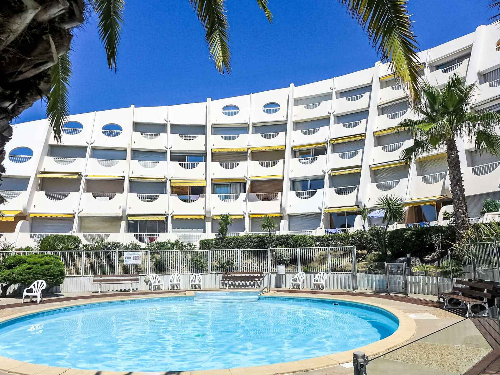 Résidence "la calypso", de 4 étages. dans le quartier de la motte du couchant, à 1 km du centre, à 50 m de la mer, à 40 m de la plage, accès direct à la plage. en commun: piscine (disponibilité saisonnière: 22.jun. - 30.aou. horaires d'ouverture de la piscine: 15:00-20:00). centre commercial 150 m, restaurant, arrêt de bus 400 m, gare