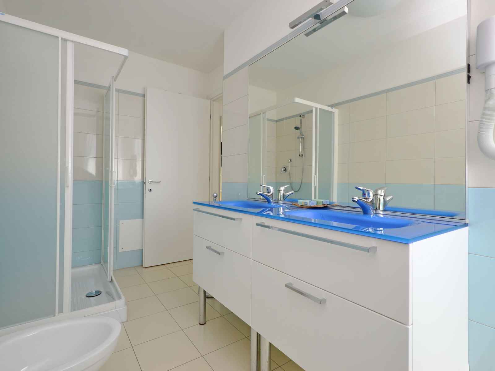 Apt 3 pièces 75 m2, à l'étage supérieur. clair, aménagement fonctionnel et moderne: séjour/chambre à coucher avec 1 divan-lit double, table pour les repas et tv (satellite). sortie sur le balcon. 2 chambres, chaque chambre avec: 1 lit et 1 lit double. cuisine ouverte (lave-vaisselle, 4 feux, bouilloire électrique, micro-ondes,