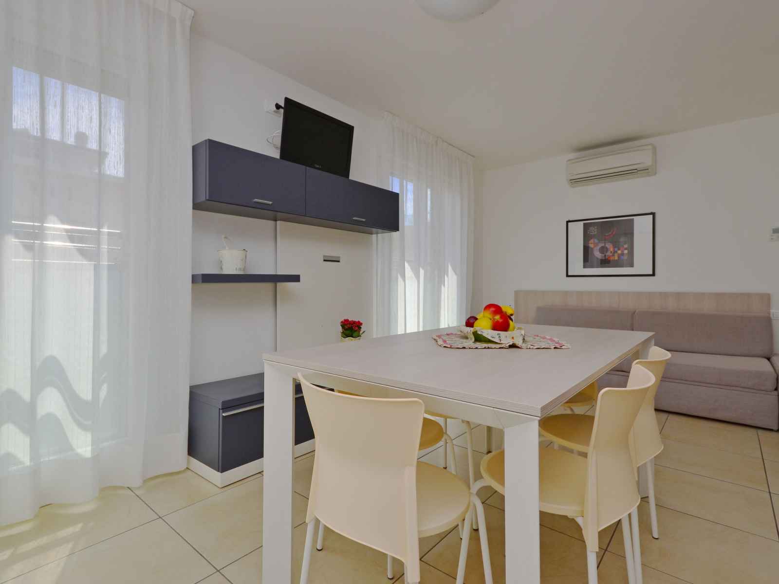 (venezia-trieste)" 20 km, plage de sable 50 m, centre thermal "bibione thermae" 15 km. terrain de golf (18 trous) 6 km. veuillez noter: déchargement et chargement des bagages à la location de vacances.