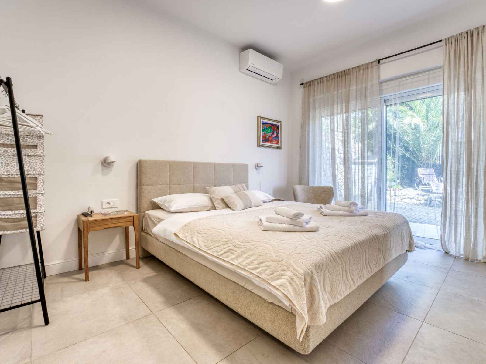 avec 1 lit double (2 x 80 cm, longueur 200 cm), douche/WC et TV (câblée) (écran plat). Cuisine ouverte (four, lave-vaisselle, 2 plaques à induction, grille-pain, bouilloire électrique, cafetière électrique). Chauffage par le sol, chauffage à air chaud. Terrasse 25 m2 partiellement couverte, pelouse 25 m2. Meubles de terrasse, chaises longues (3). Superbe vue sur la mer. A disposition: sèche-cheveux. Internet (Connexion WIFI, gratuit). Veuillez noter: maison non-fumeur. 1 animal/ chien de petite taille autorisé.