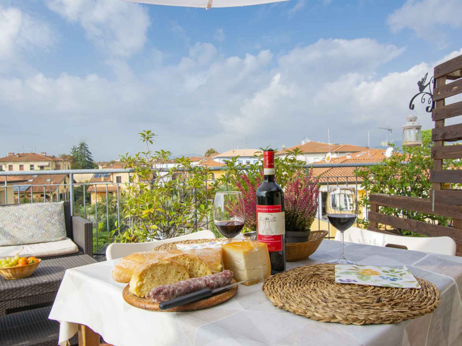 (four, lave-vaisselle, Poêle à gaz, 4 feux, grille-pain, bouilloire électrique, micro-ondes, congélateur, cafetière électrique). Douche/WC. Chauffage, air-conditionné. Terrasse. Meubles de terrasse. A disposition: lave-linge, sèche-linge, fer à repasser, chaise haute pour enfant, lit bébé jusqu'à 2 ans. Internet (Connexion WIFI, gratuit). Place de parking à 25 m. Veuillez noter: logement non-fumeur. Maximum 1 animal/ chien autorisé. Entrée privée. IT046017B4A5ZEX7FT