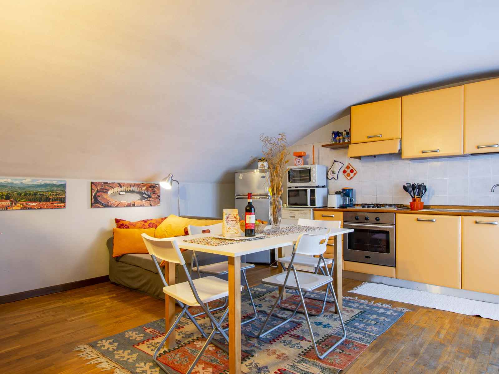 "la rondine (luu280)", apt 3 pièces 70 m2 sur 2 niveaux. clair, aménagement fonctionnel: à l'étage supérieur: 1 chambre double avec table pour les repas et air-conditionné. 1 chambre avec 1 divan-lit double et 1 couchage. douche/wc. sous le toit: séjour/salle à manger mansardé avec tv. sortie sur la terrasse. mansardée, cuisine ouverte