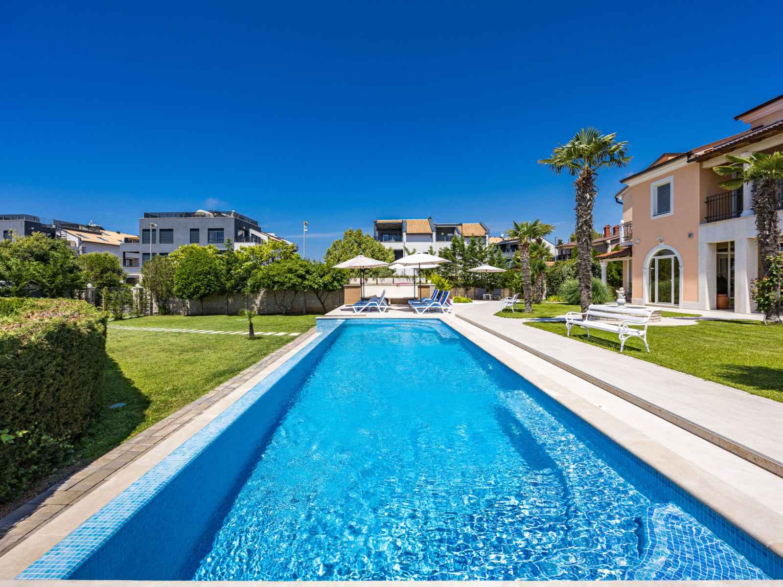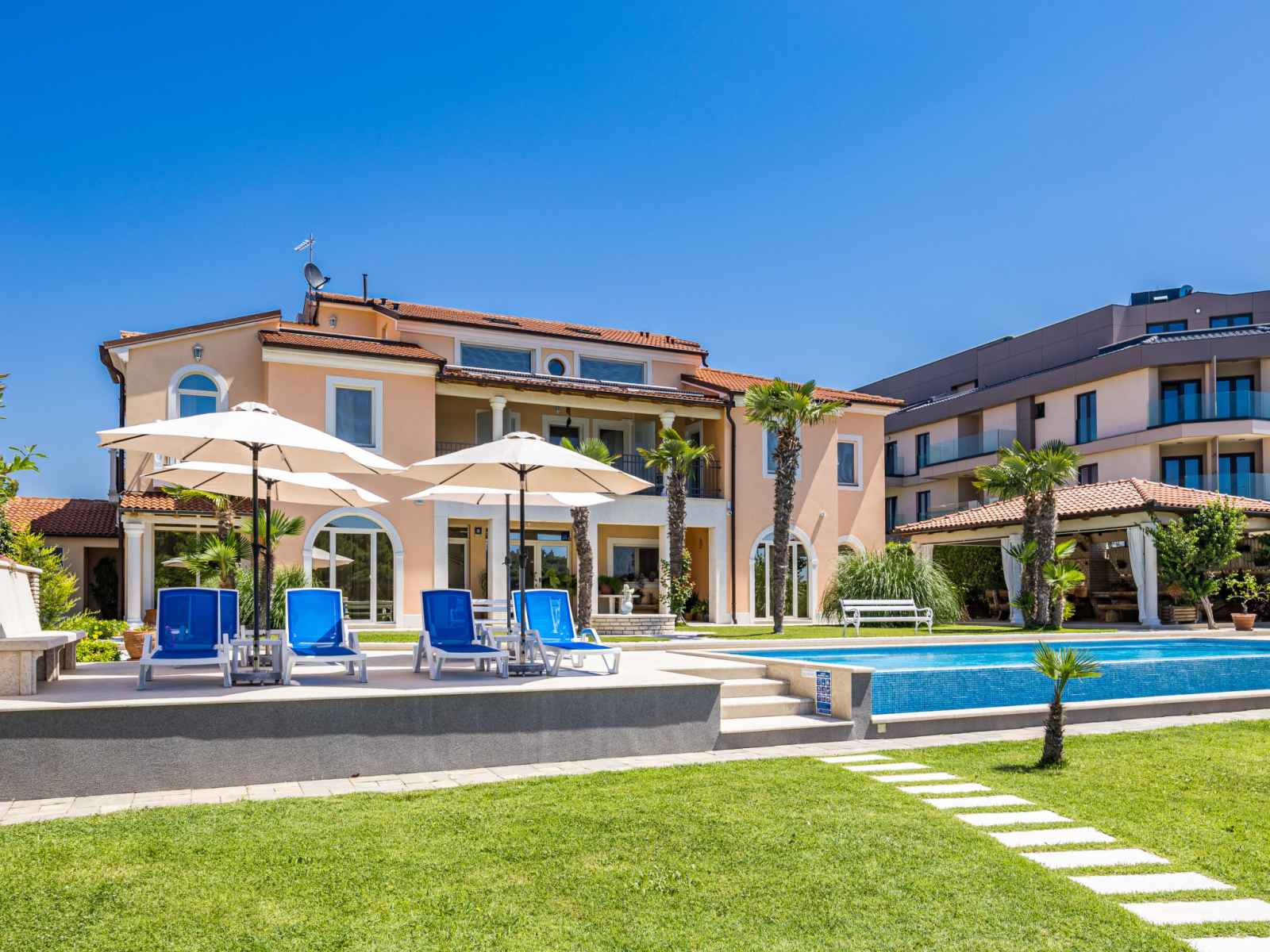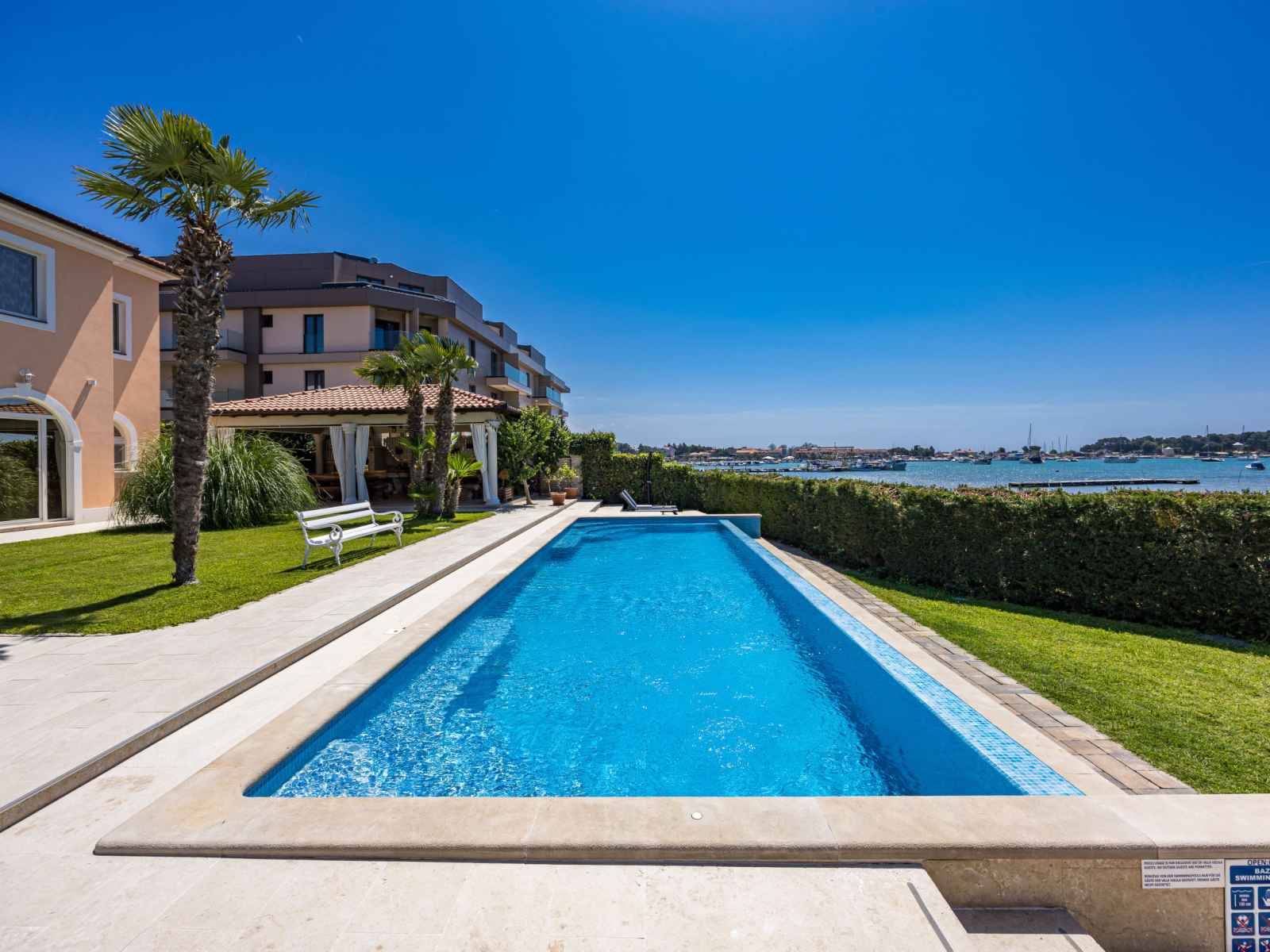Belle petite résidence accueillante "villa vizula", de 3 étages. À 500 m du centre de medulin, situation ensoleillée, à 10 m de la mer, à 250 m de la plage. en commun: terrain 1'000 m2 (clôturé), piscine rectangulaire (11 x 4 m, 40 m2, disponibilité saisonnière: 01.jun. - 01.oct.). douche extérieure, terrasse (20 m2), meubles de jardin,