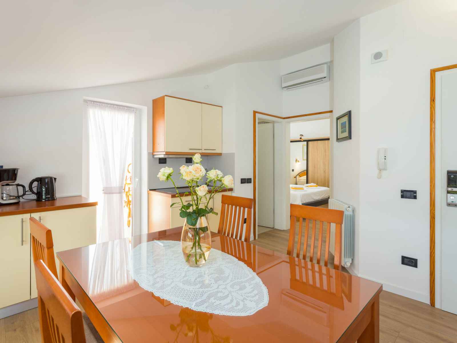 plaques vitrocéramiques, grille-pain, bouilloire électrique, micro-ondes, congélateur, cafetière électrique). 2 douches/WC. Chauffage à air chaud. Balcon 7 m2. Mobilier de balcon. Superbe vue sur l'océan. A disposition: lave-linge, coffre-fort. Internet (Connexion WIFI, gratuit).