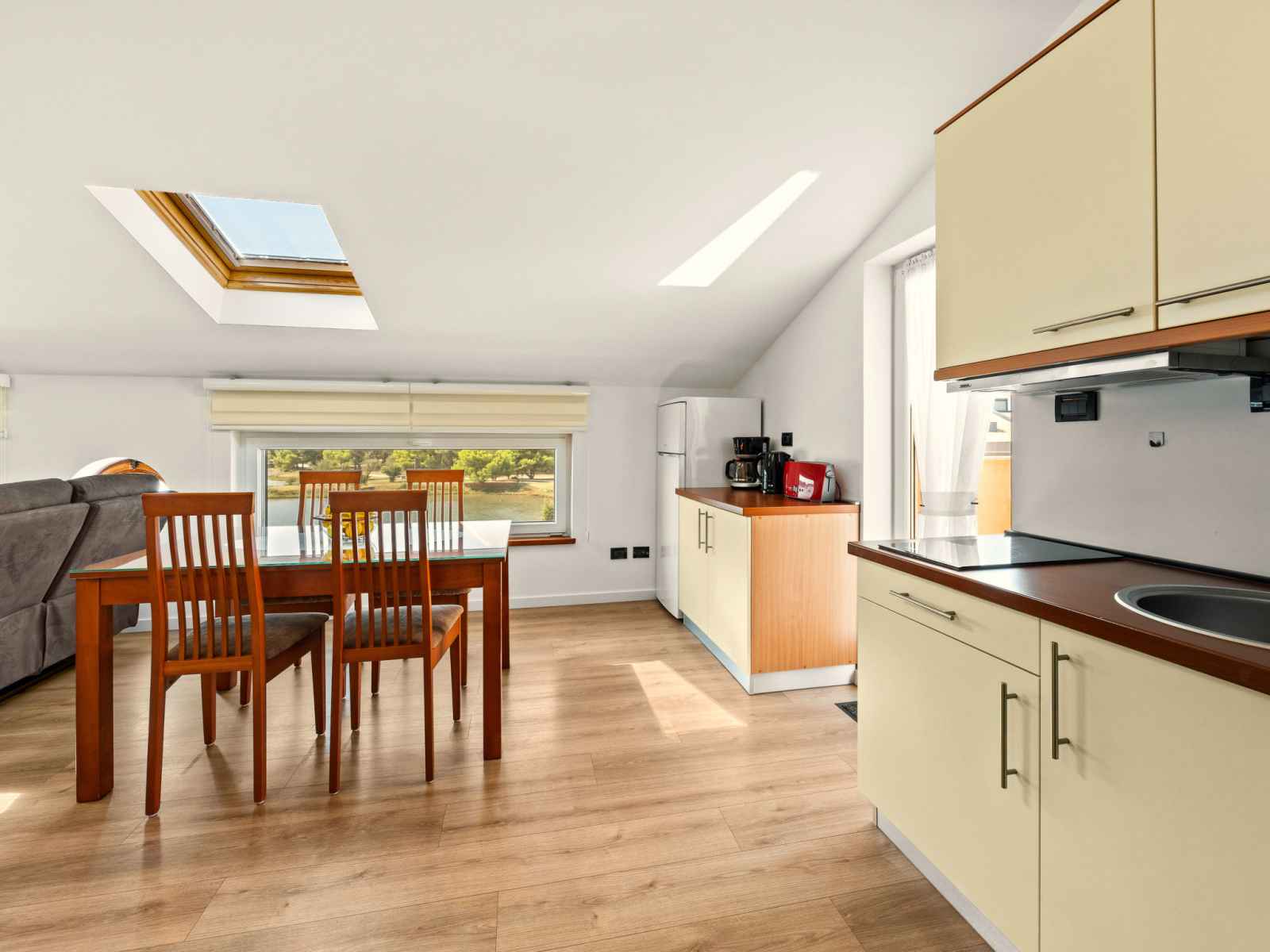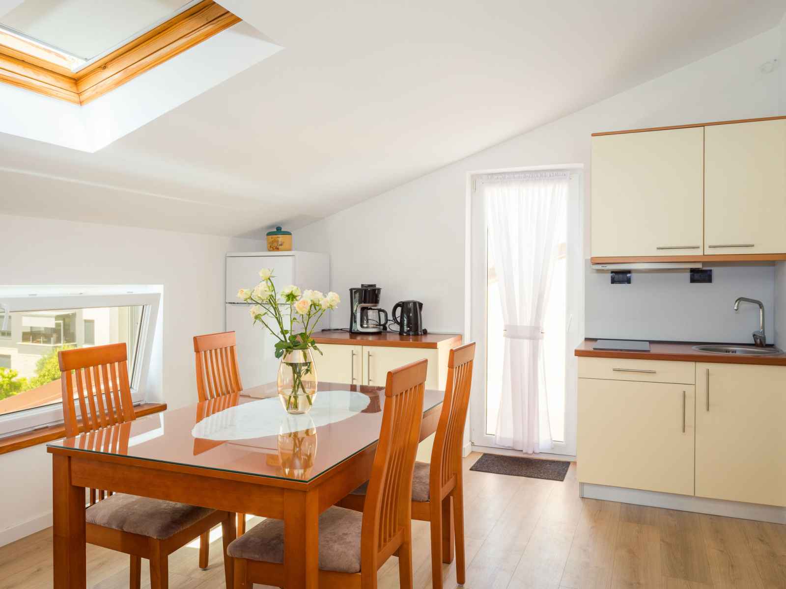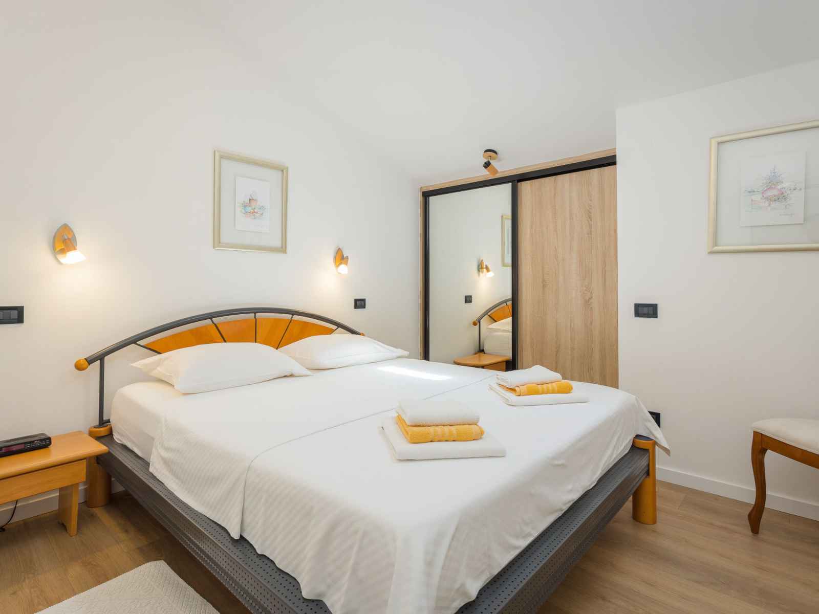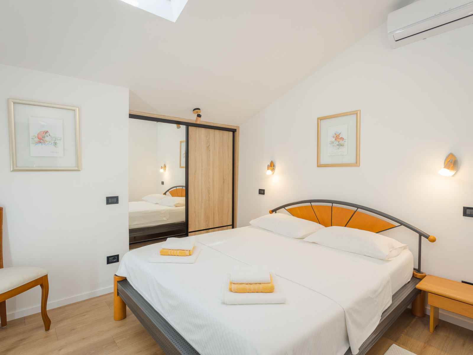 "gold", apt 3 pièces 70 m2 au 2ème étage. aménagement agréable et plaisant: séjour/salle à manger mansardé avec tv (satellite) (écran plat), air-conditionné. sortie sur le balcon. mansardé 1 chambre avec 1 lit (80 cm, longueur 200 cm). mansardé 1 chambre avec 1 grand-lit (160 cm, longueur 200 cm). cuisine ouverte (lave-vaisselle, 2