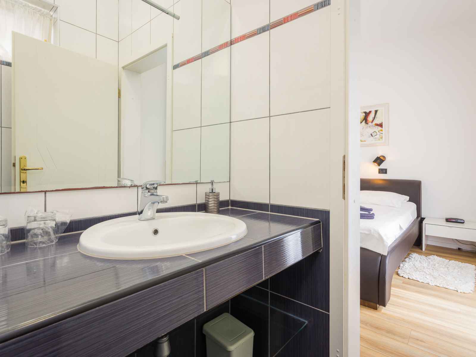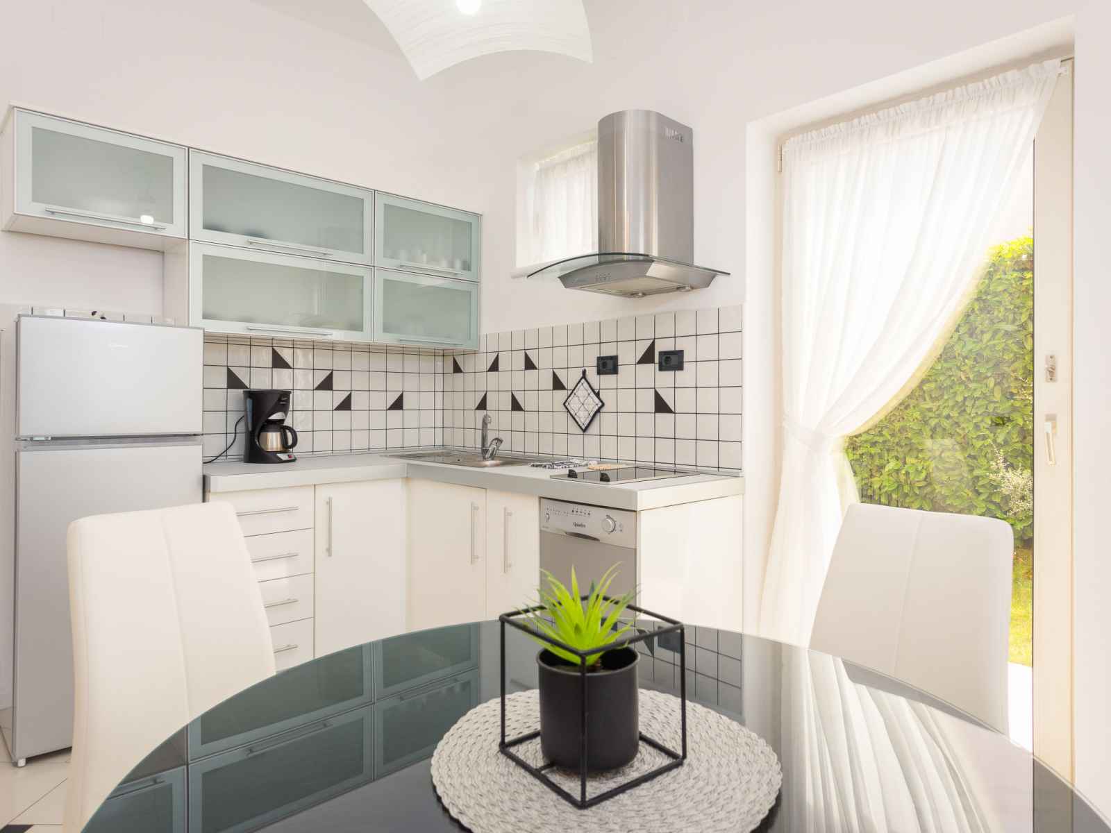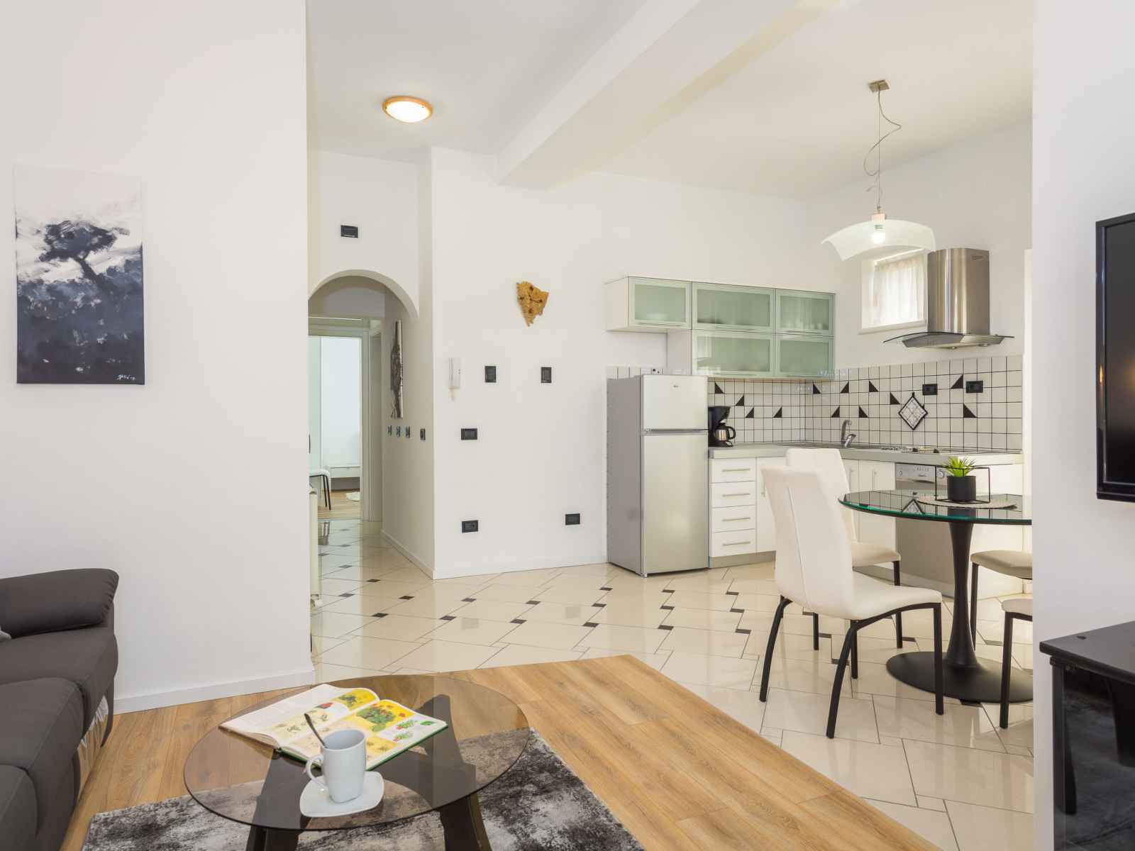 "black&white", apt 3 pièces 70 m2. aménagement agréable et plaisant: séjour/salle à manger avec tv (satellite) (écran plat), air-conditionné. 1 chambre avec 1 lit (80 cm, longueur 200 cm). 1 chambre avec 1 grand-lit (160 cm, longueur 200 cm). cuisine ouverte (lave-vaisselle, 2 plaques vitrocéramiques, grille-pain, bouilloire électrique,