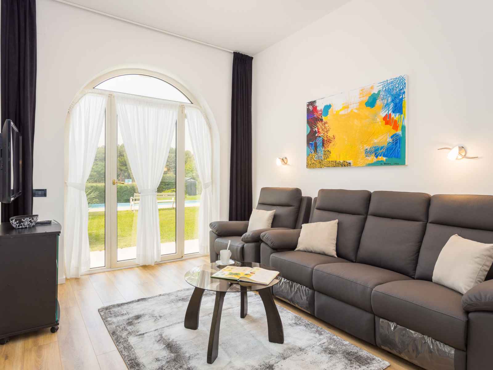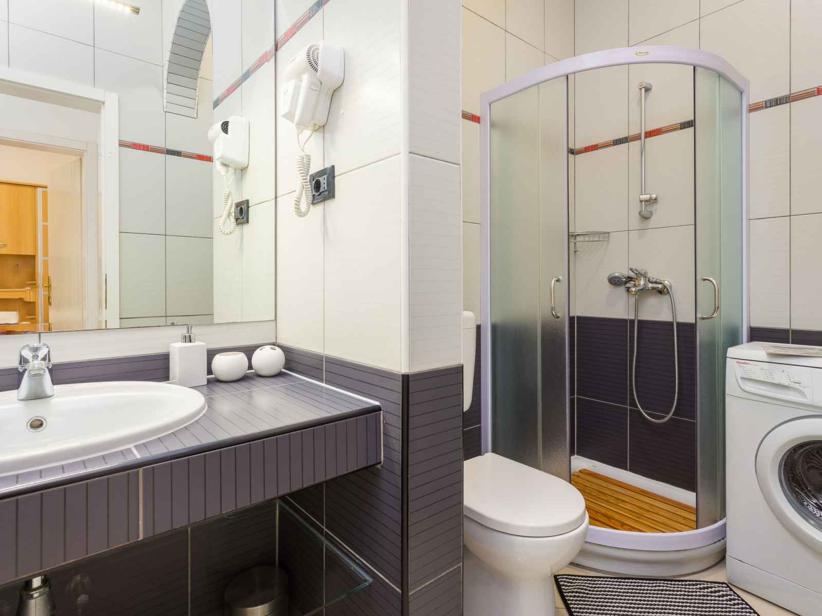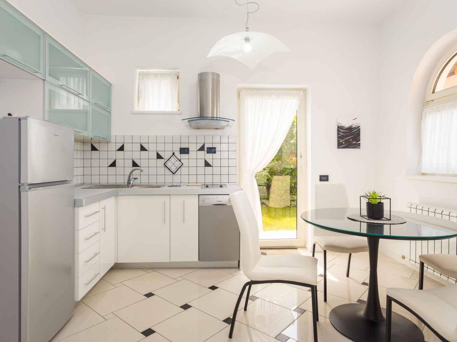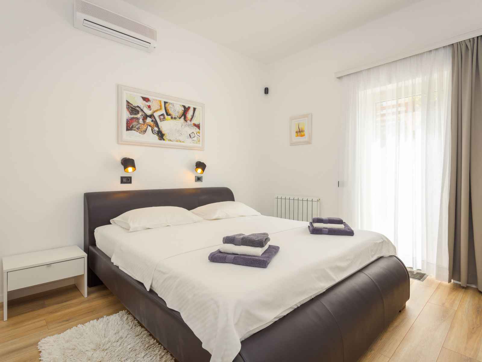 "black&white", apt 3 pièces 70 m2. aménagement agréable et plaisant: séjour/salle à manger avec tv (satellite) (écran plat), air-conditionné. 1 chambre avec 1 lit (80 cm, longueur 200 cm). 1 chambre avec 1 grand-lit (160 cm, longueur 200 cm). cuisine ouverte (lave-vaisselle, 2 plaques vitrocéramiques, grille-pain, bouilloire électrique,